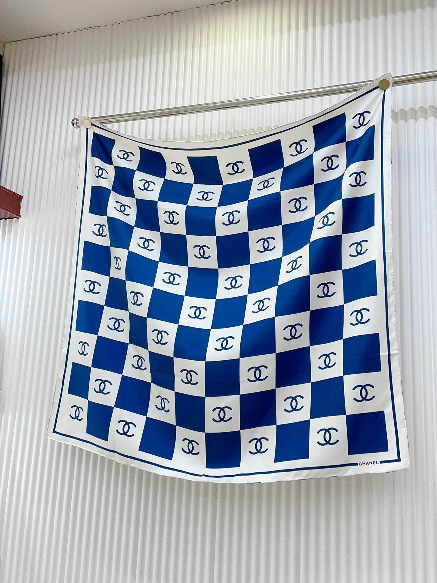CC Square Scarf 90 CM In Blue And White Striped Silk 174876