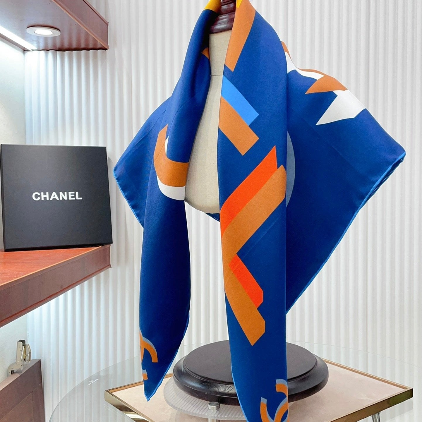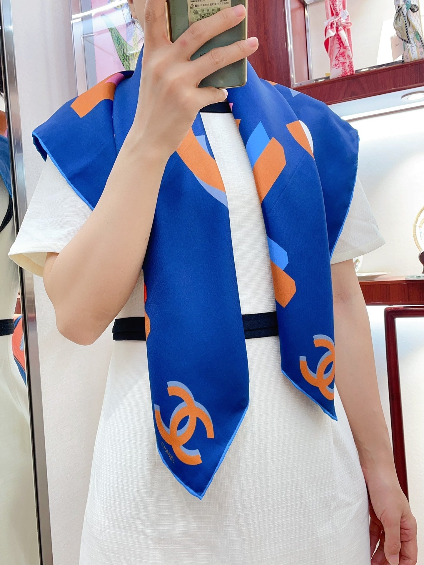 CC Square Scarf 90 CM In Blue Colorful Silk Twill 206466