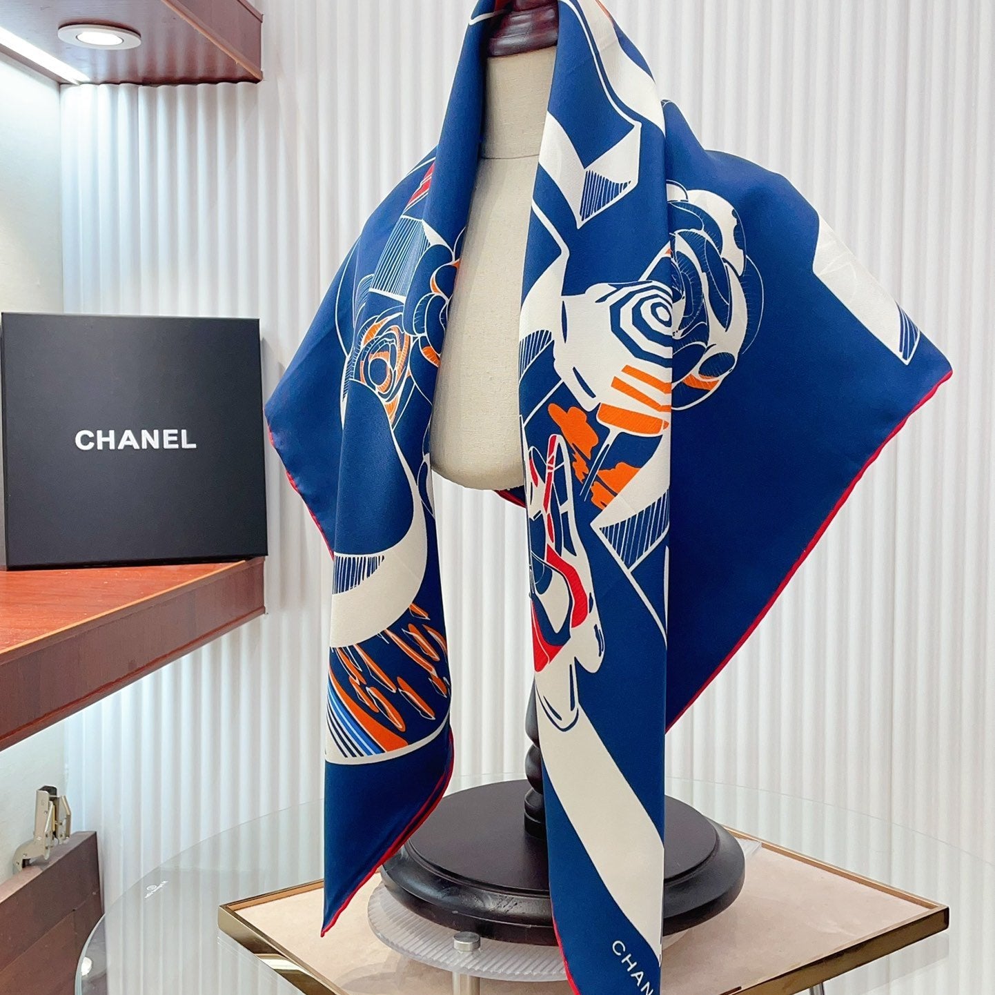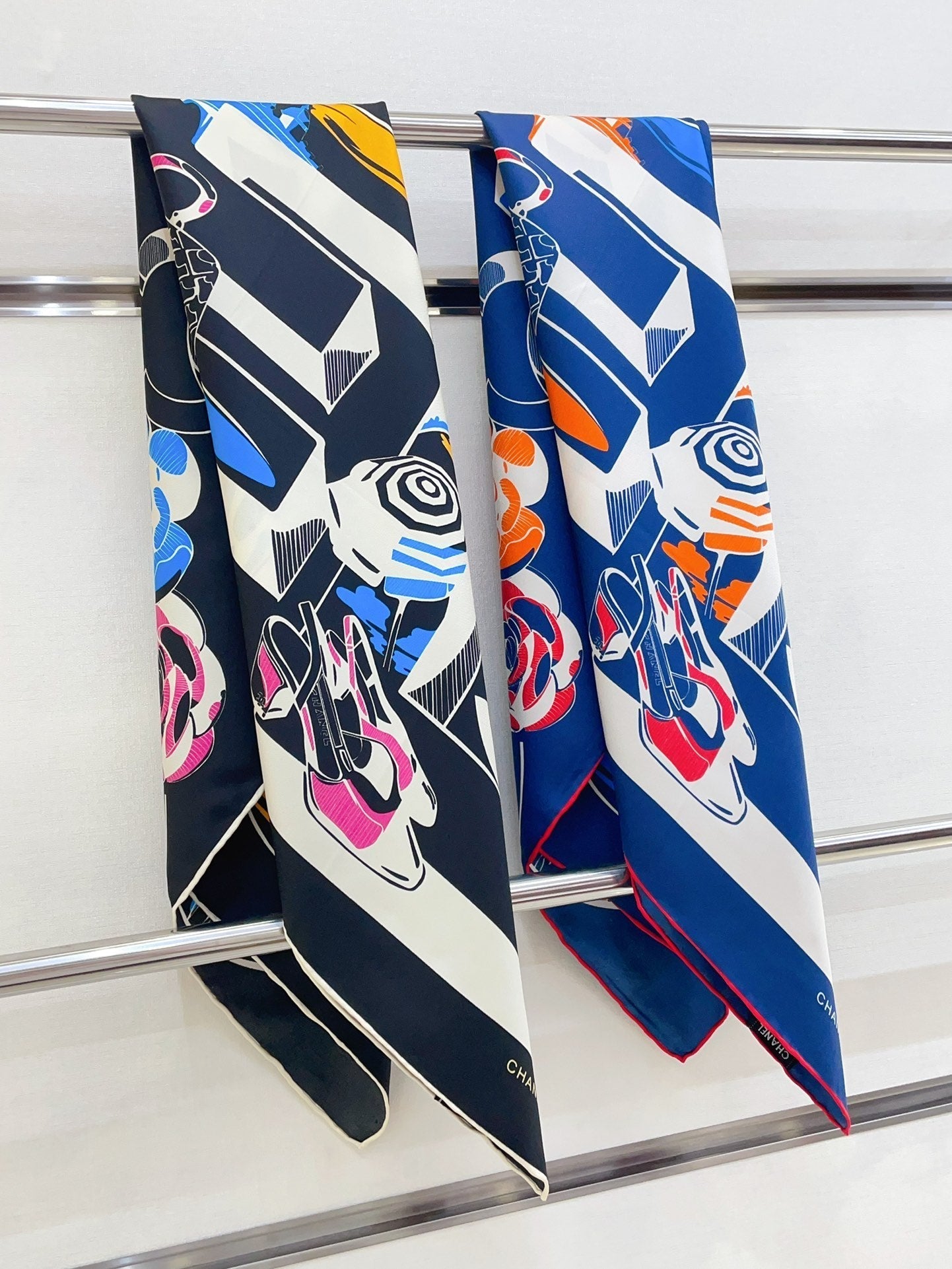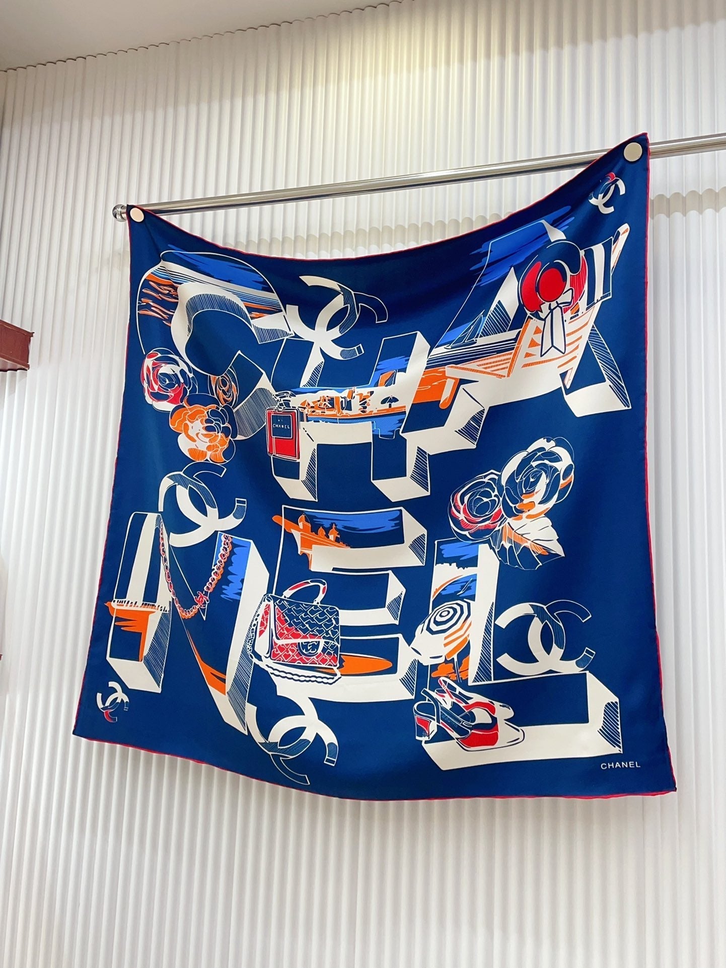 CC Square Scarf 90 CM In Blue Colorful Silk Twill 211097