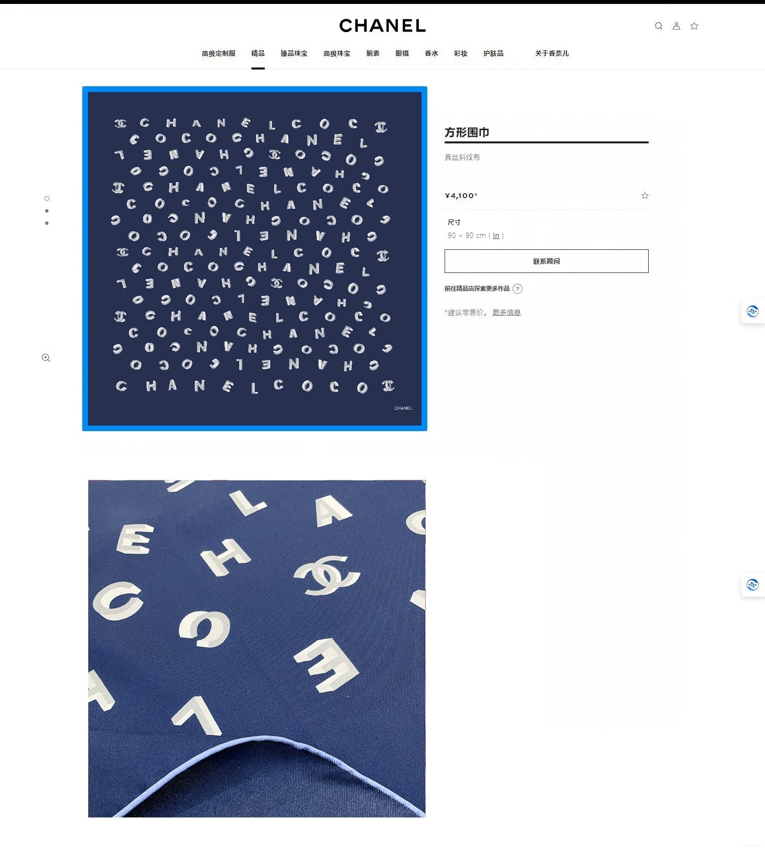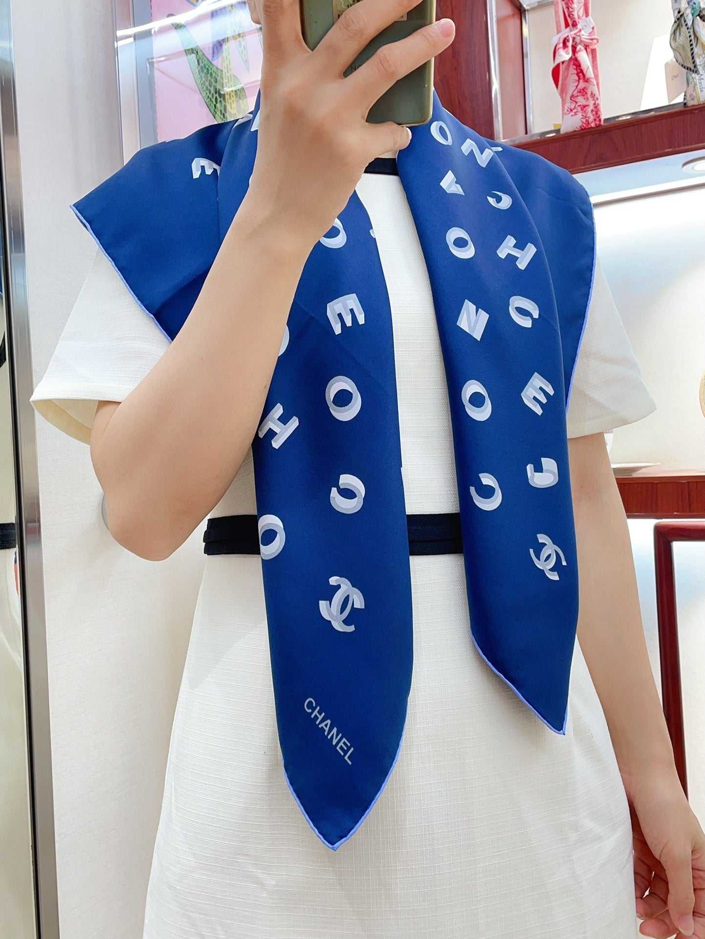 CC Square Scarf 90 CM In Blue With Printed Letters Silk Twill 208581