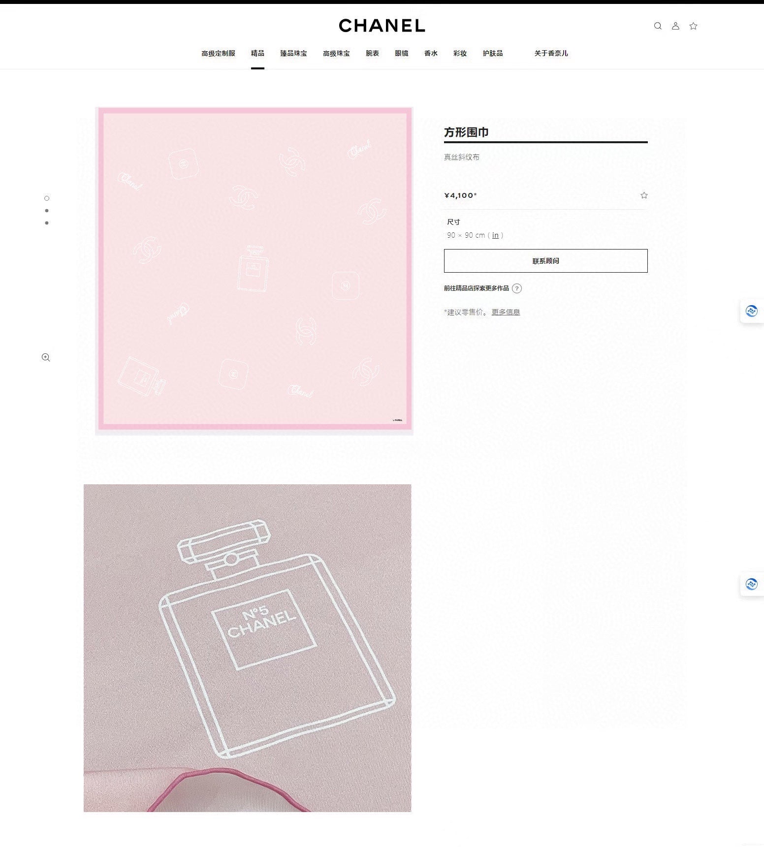 CC Square Scarf 90 CM In Pink Silk Twill 335844