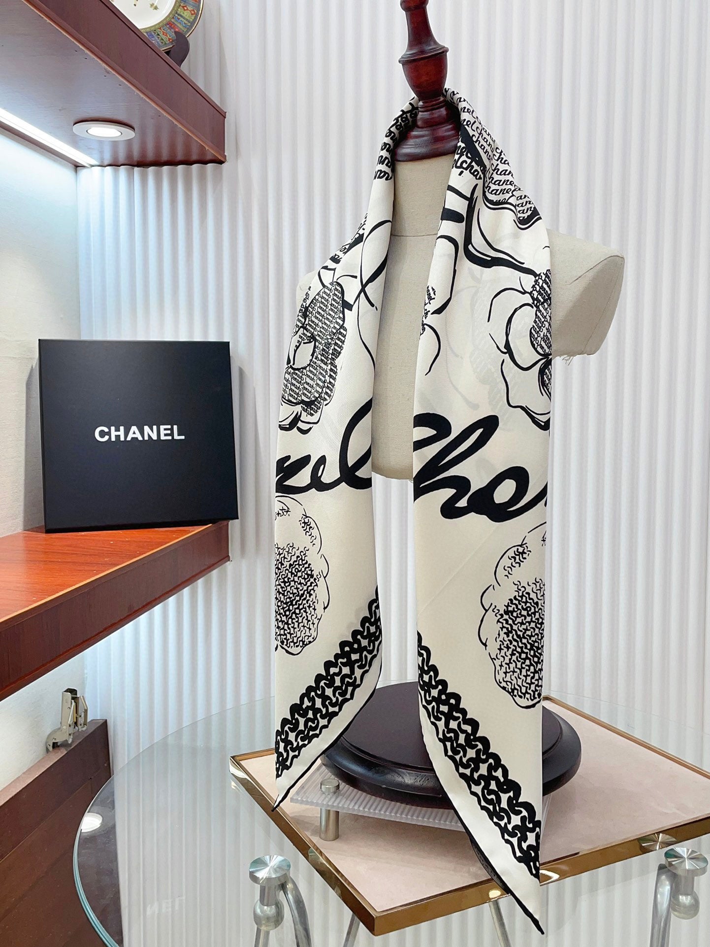 CC Square Scarf 90 CM In White Black Silk Twill 271782