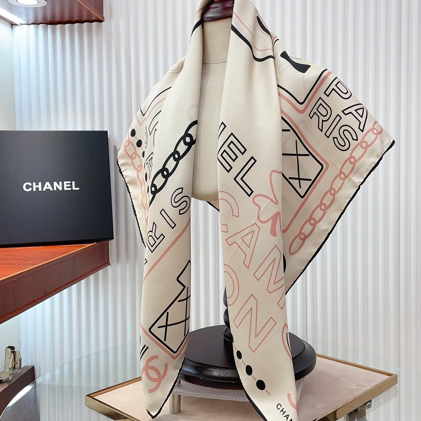 CC Square Scarf 90 CM In White Mix Black Pink Silk Twill 165001