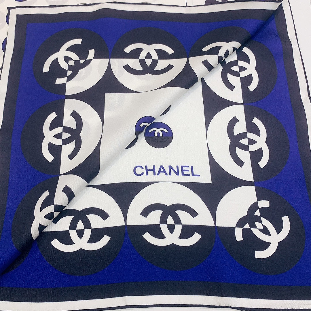 CC Square Scarf 90 CM In White Mix Blue Silk Twill 288718