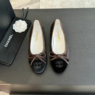 ballet flat chocolate suede and black canvas