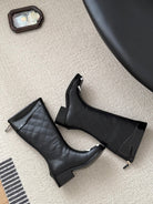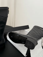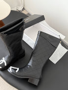 CC 2025 Vintage Cambon Mid-Calf Boots Black White Cowhide 550637