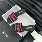 Woven Embroidered Letter Slippers Black Pink