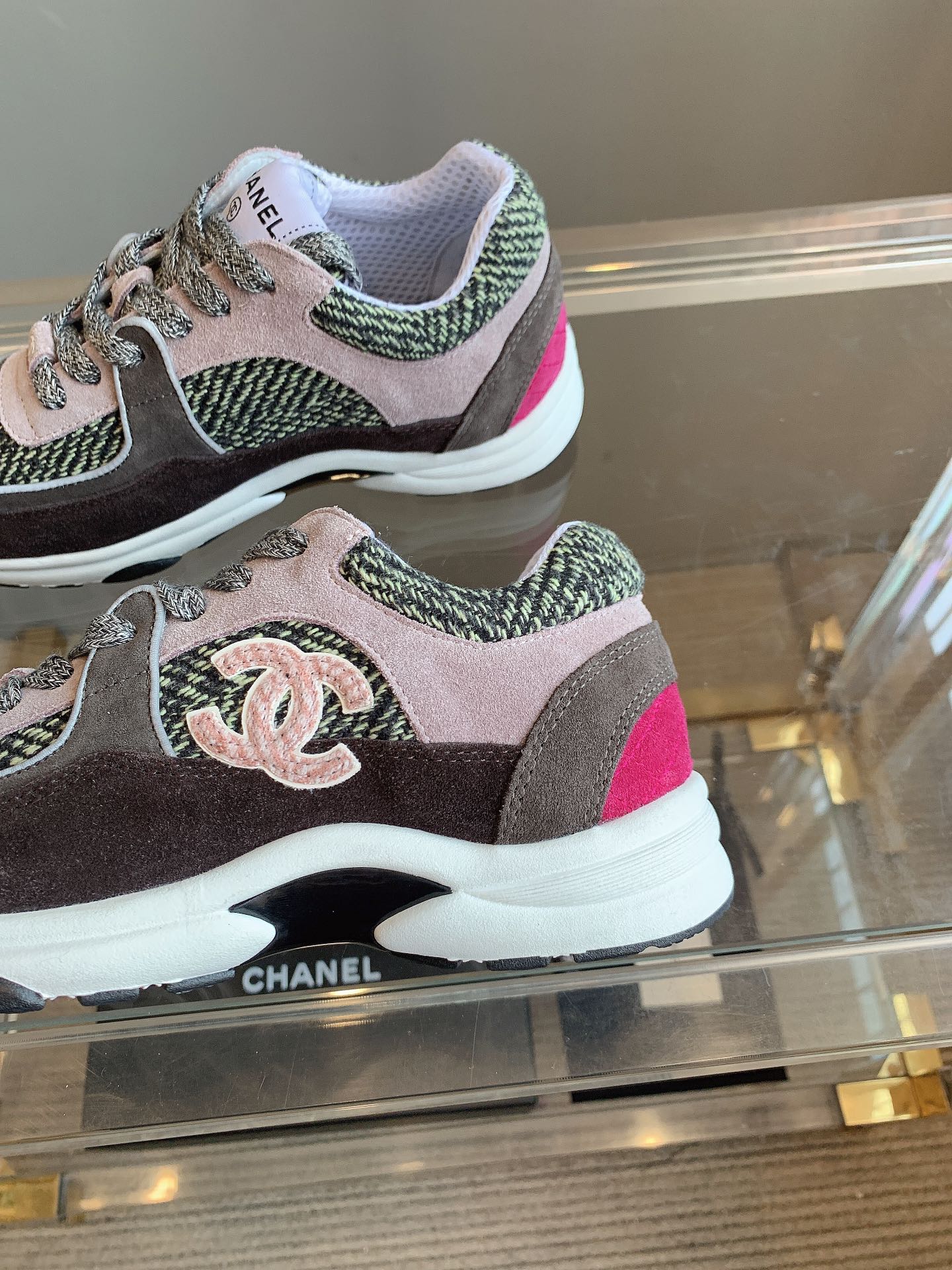 - Material: Suede, Tweed