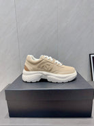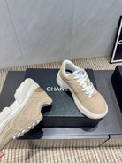 Chanel 25 Sneaker Light Brown White Mesh Fabric 540318