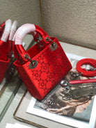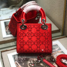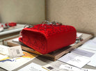 LADY 24 HANDBAG EMBOSSED DIAMOND IN CHERRY RED CALFSKIN