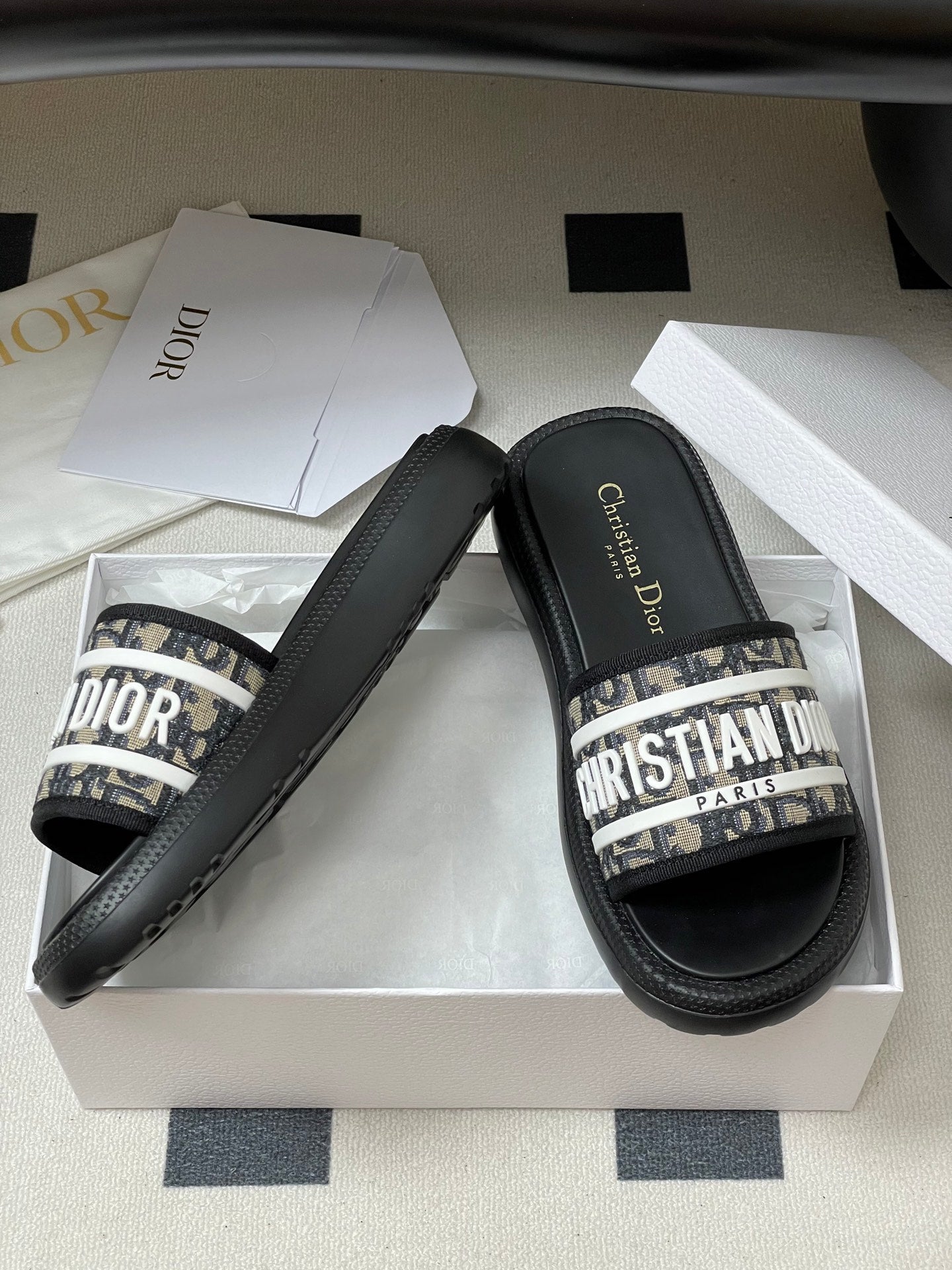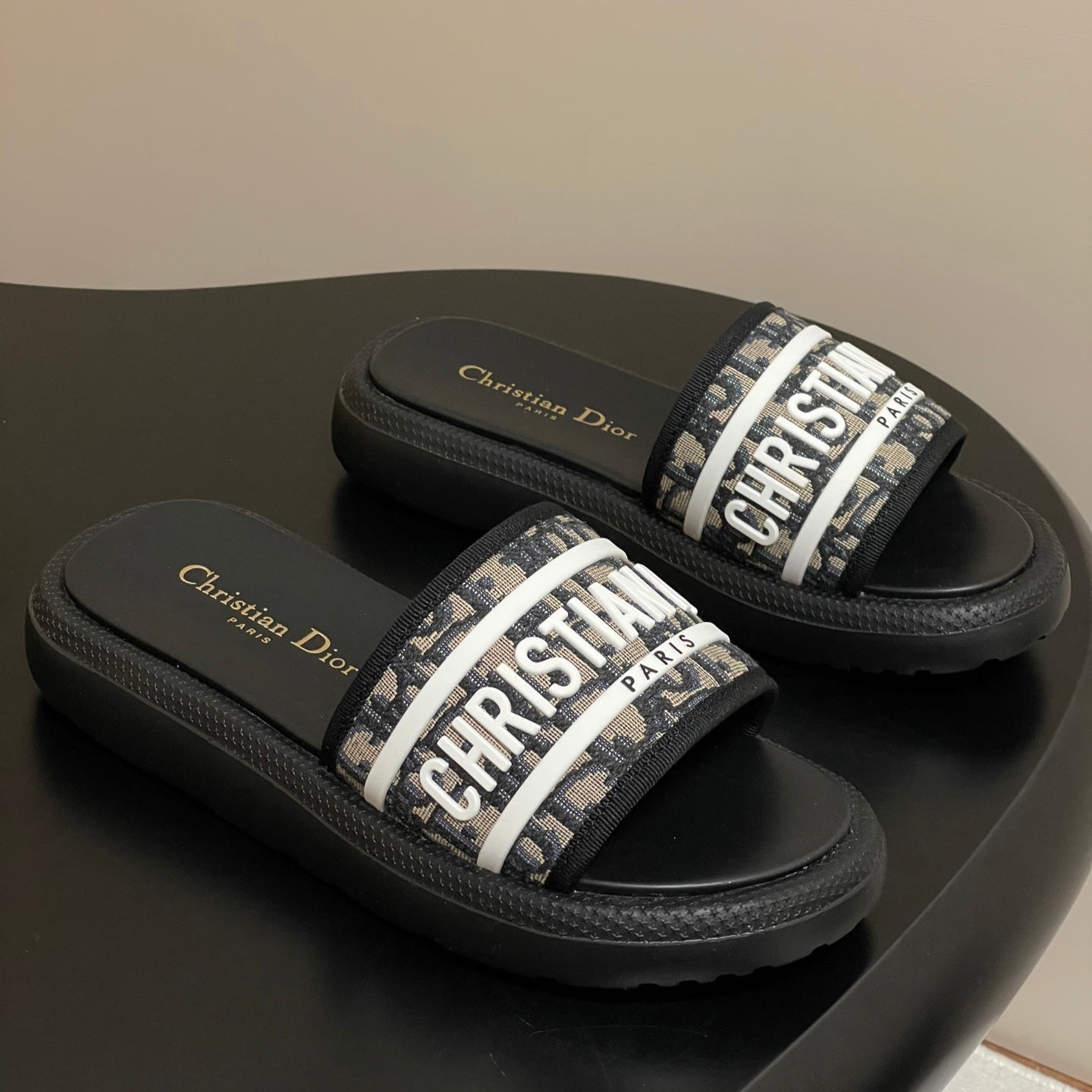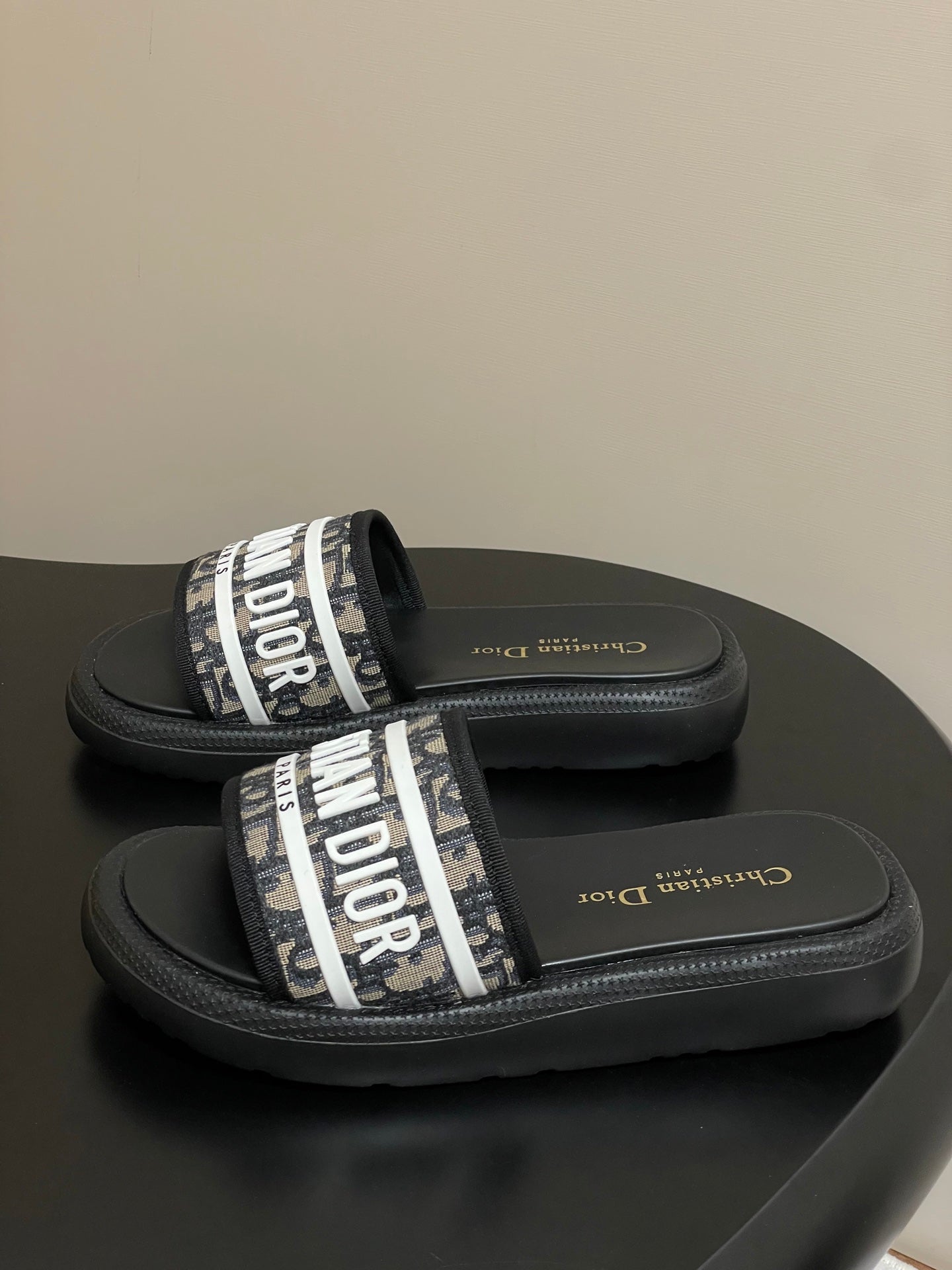CD 25 Slippers Black White Fabric 394063