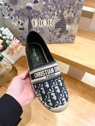 CD Granville Espadrille Charcoal Blue Black Oblique Jacquard Fabric And Calfskin