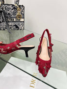 J'Adior Slingback Pump 65mm In Red Floral Embroidered Lace Fabric 100845