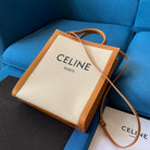 VERTICAL TOTE BAG 33 WHITE BROWN CANVAS AND CALFSKIN