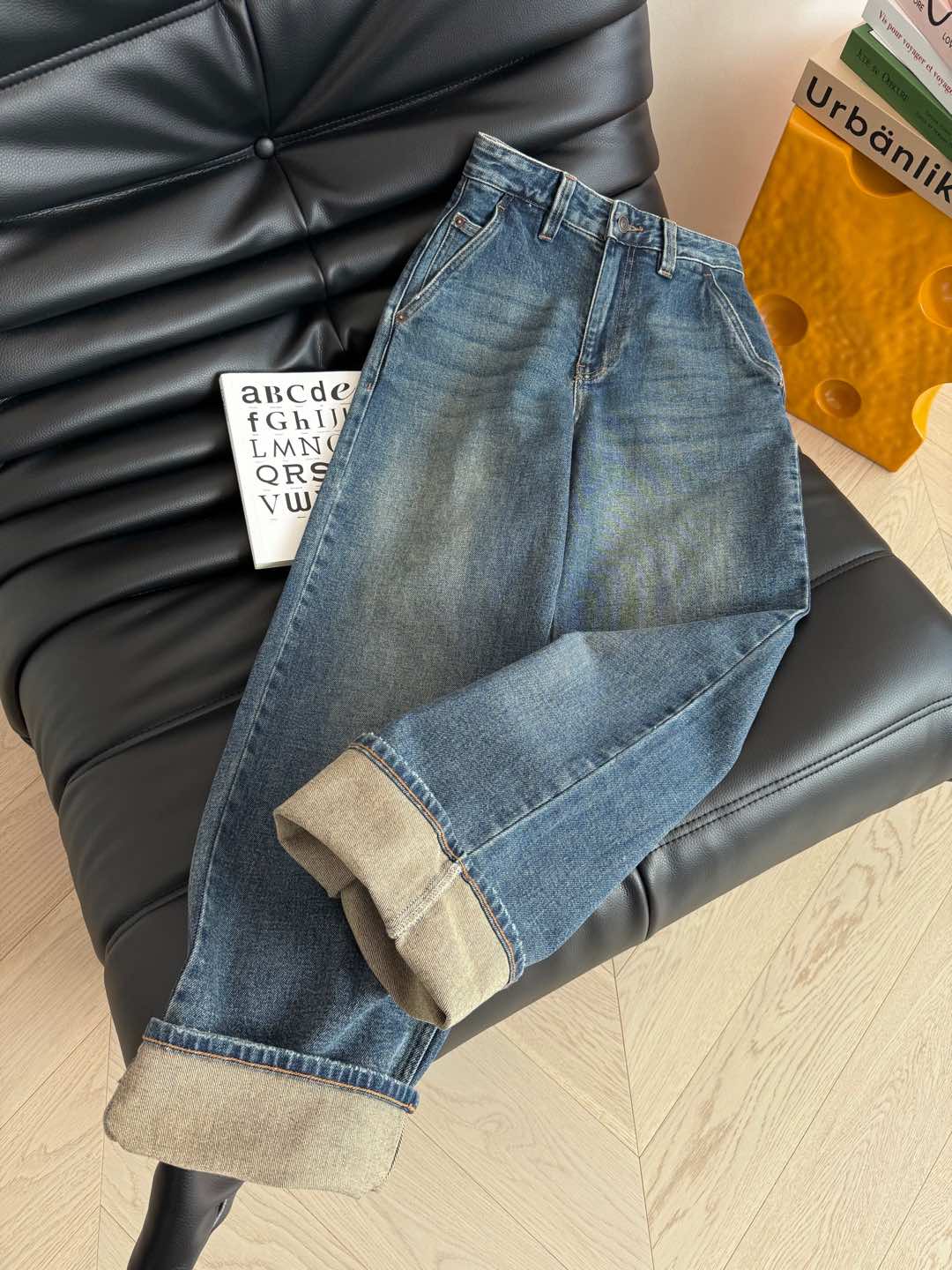 Celine 25 Pattern Embroidered Straight Jeans Blue Cotton