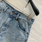 Celine Logo Embroided Denim Short Light Blue Cotton