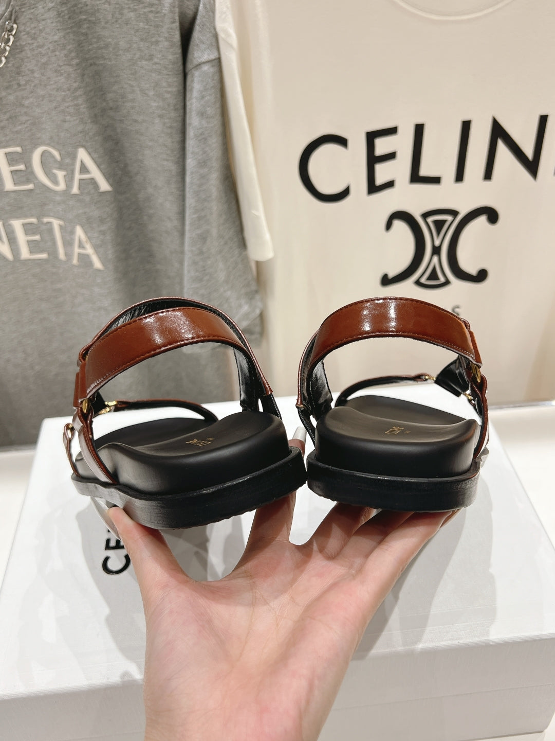 CELINE MAUD SANDAL WITH TRIOMPHE DEEP BROWN COWHIDE 236756