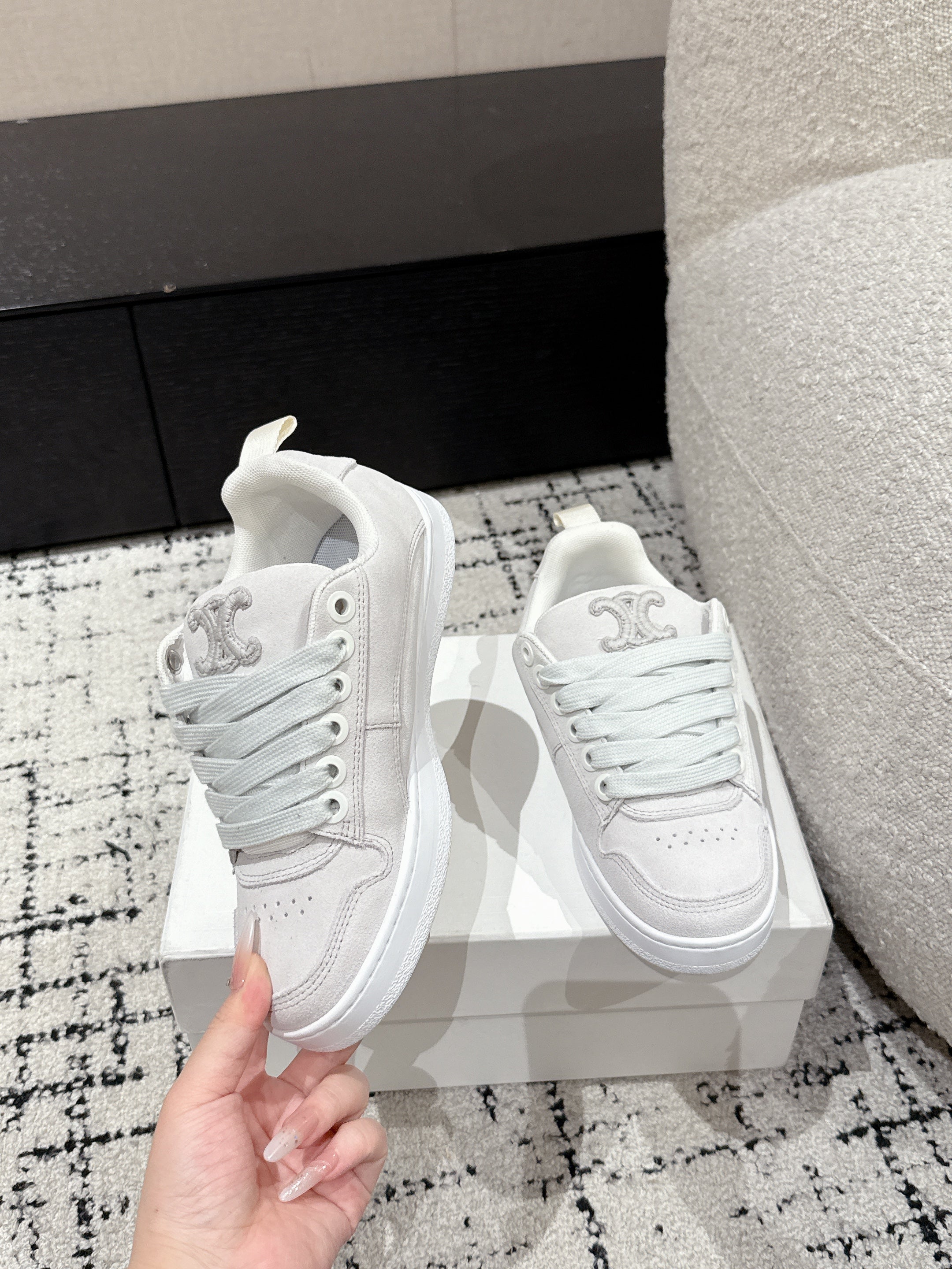 CELINE 25C Huntington Low Top Sneaker White Suede 232344