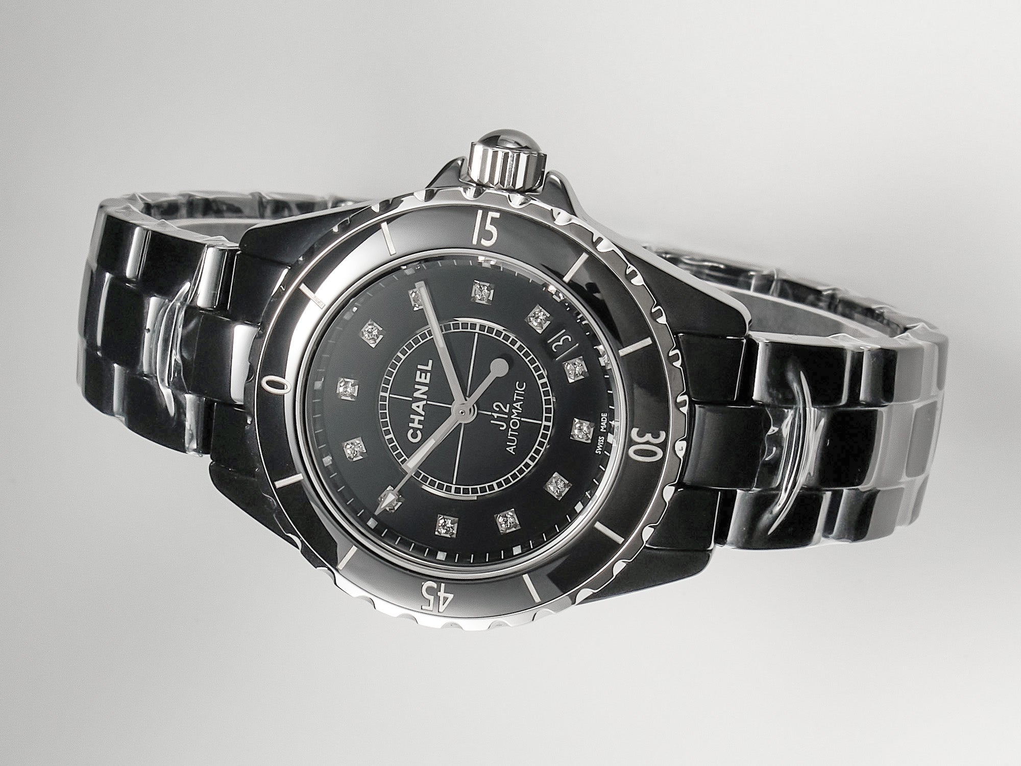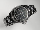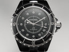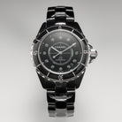 J12 Date Automatic Black Ceramic Diamond Numerals Black Dial White Steel Hands