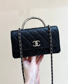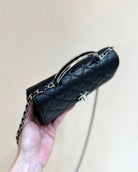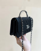 CC 25P Flap Bag Top Handle 18.5cm Black Grained Calfskin