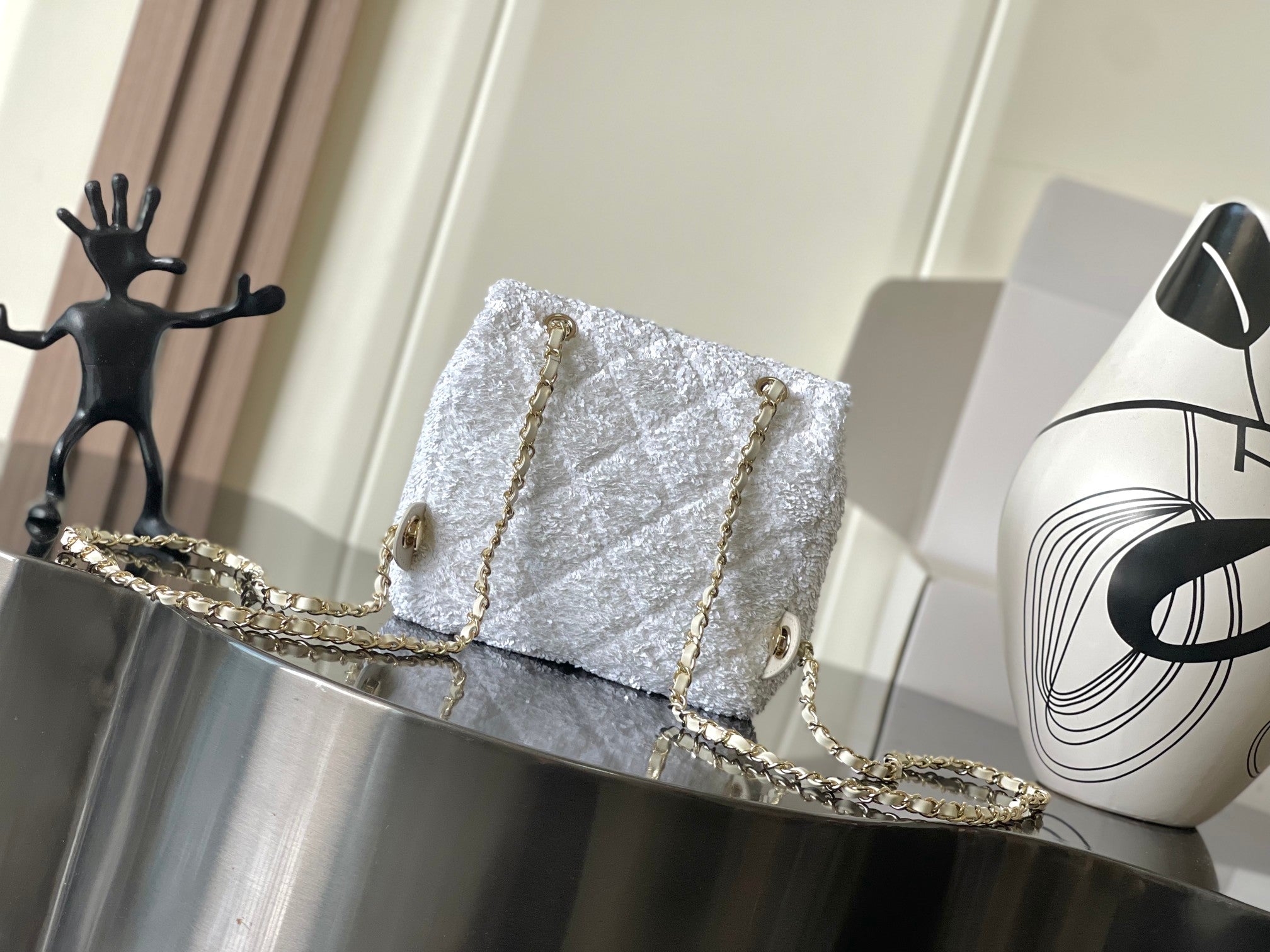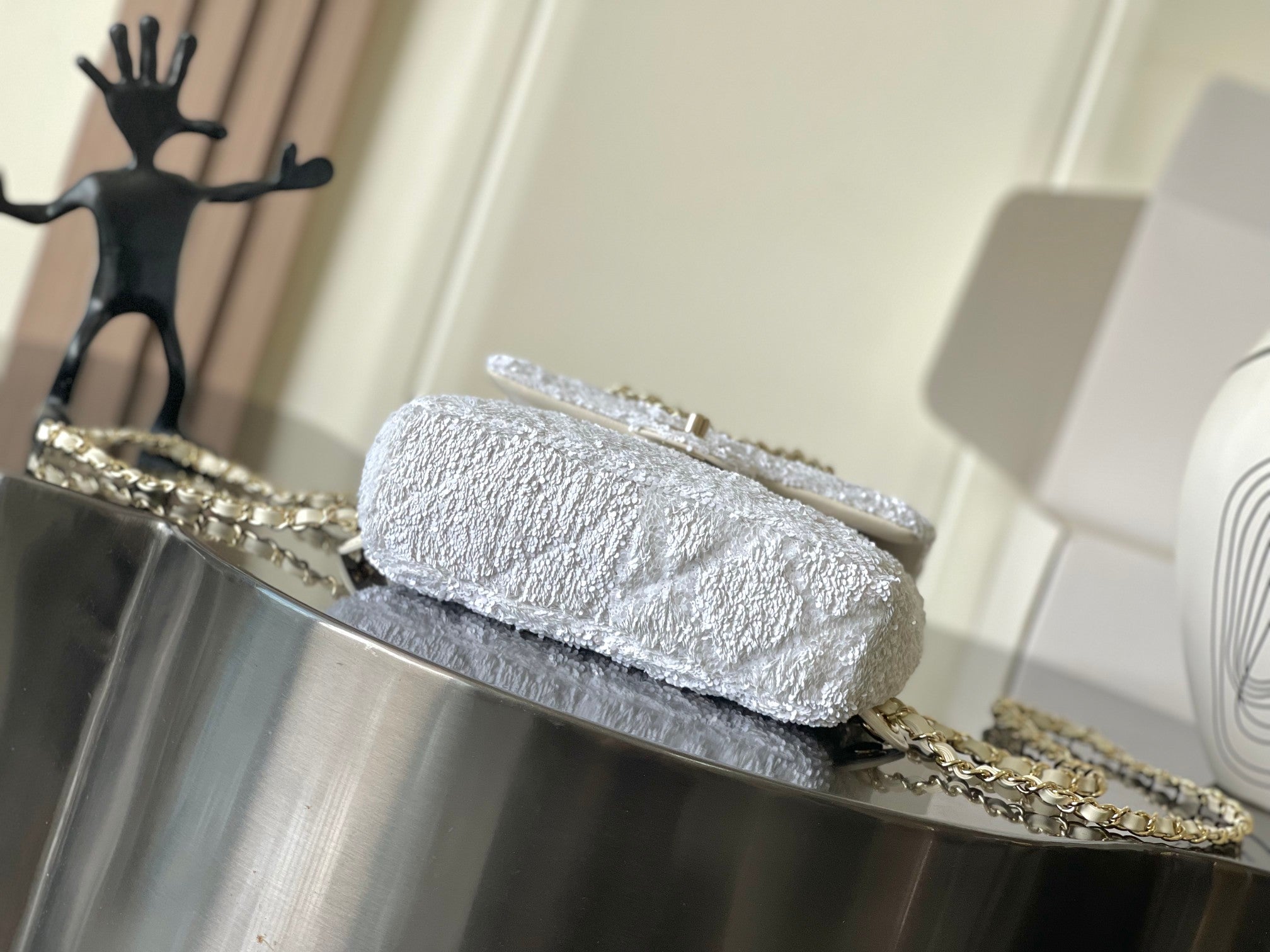 Chanel 25 Sequin Embroidered 21cm Bag White Leather Sequins 286172