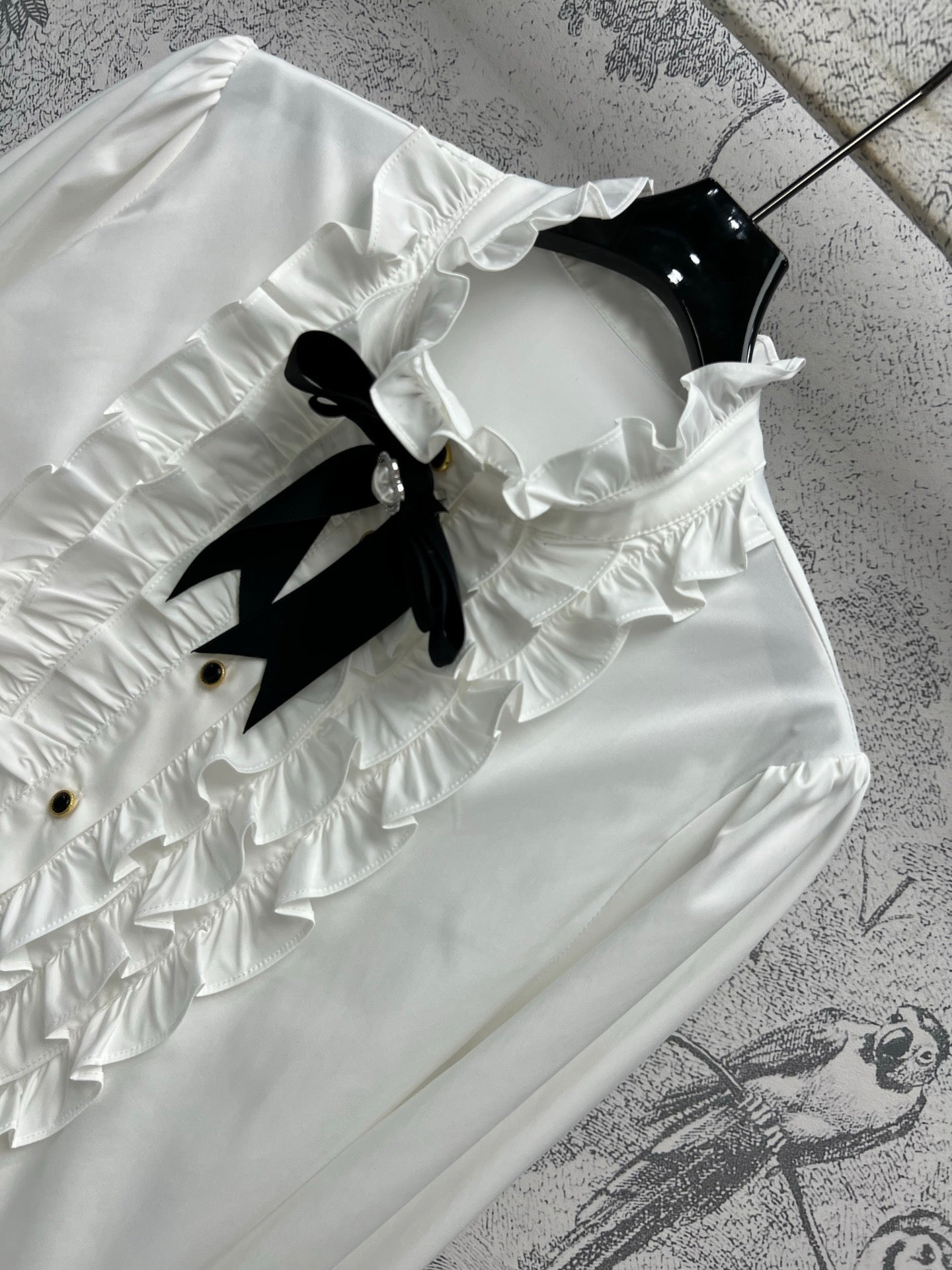 CC 25 Lace Pleated Shirt White Cotton