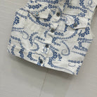 CC 25 Printed Denim Round Neck Vest Blue White Cotton