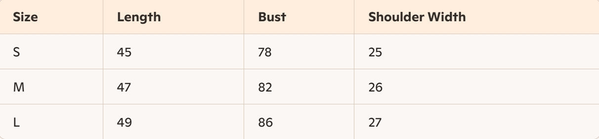 - Size : S, M,L