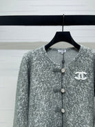 Chanel 2025 Fur-sleeved Crew Neck Cardigan Gray Polyester Wool 319595