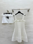 Chanel 2025 Raw-Edge Check Suspender Dress White Cotton 319515