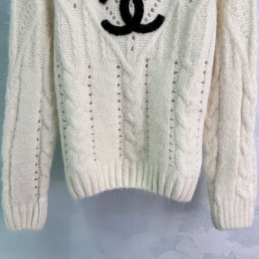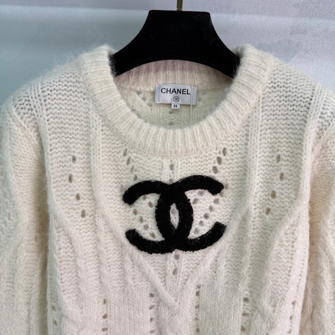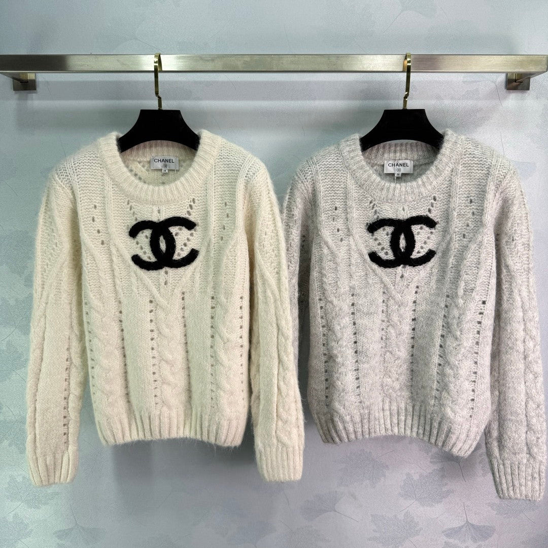 Chanel 25 Sweater Light Gray and Cream Wool 308087