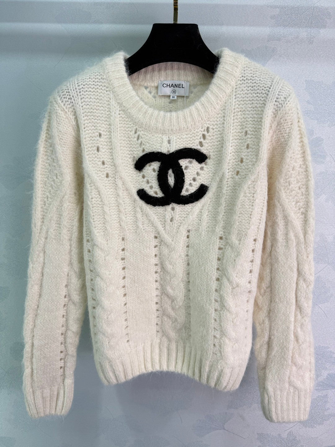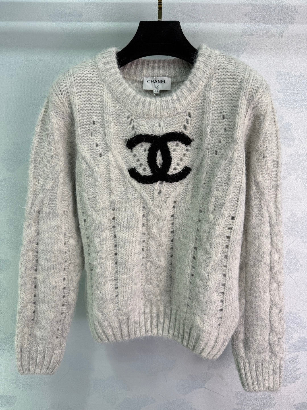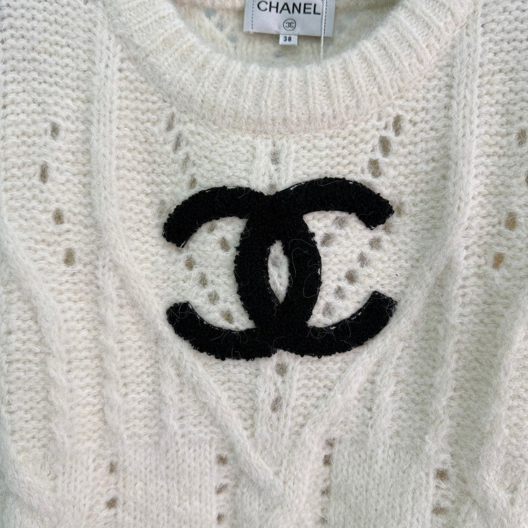 Chanel 25 Sweater Light Gray and Cream Wool 308087