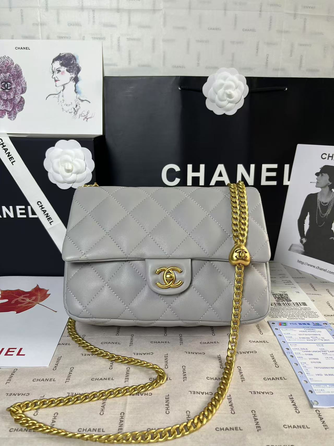 25C Mini Flap 24cm Grey Lambskin Gold Heart Hardware