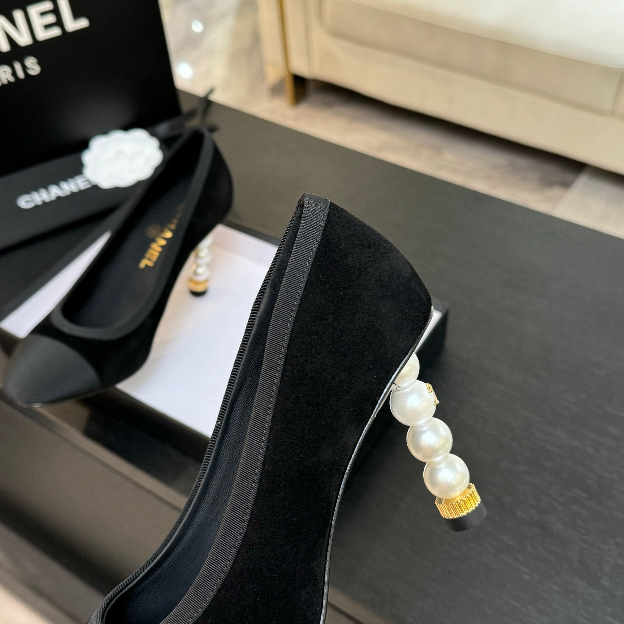 CC 25S Pump 85mm Black Suede Grosgrain