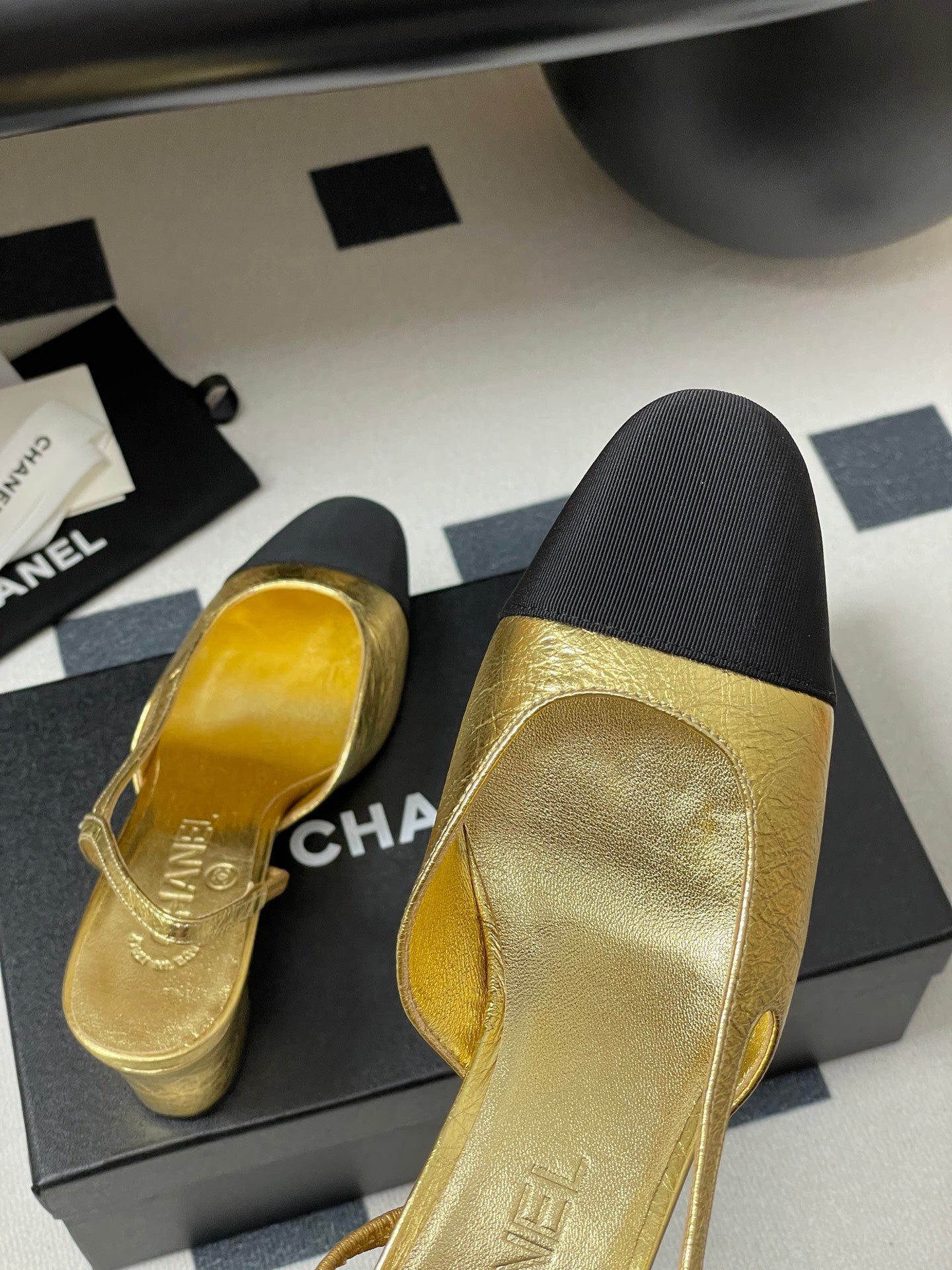 Chanel 2025 Slingback 65mm Gold Metalic Lambskin