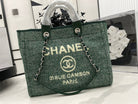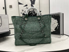 CC Deauville Tweed Bag Green Leather Silver Hardware 10