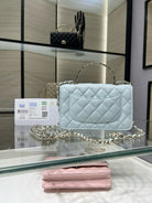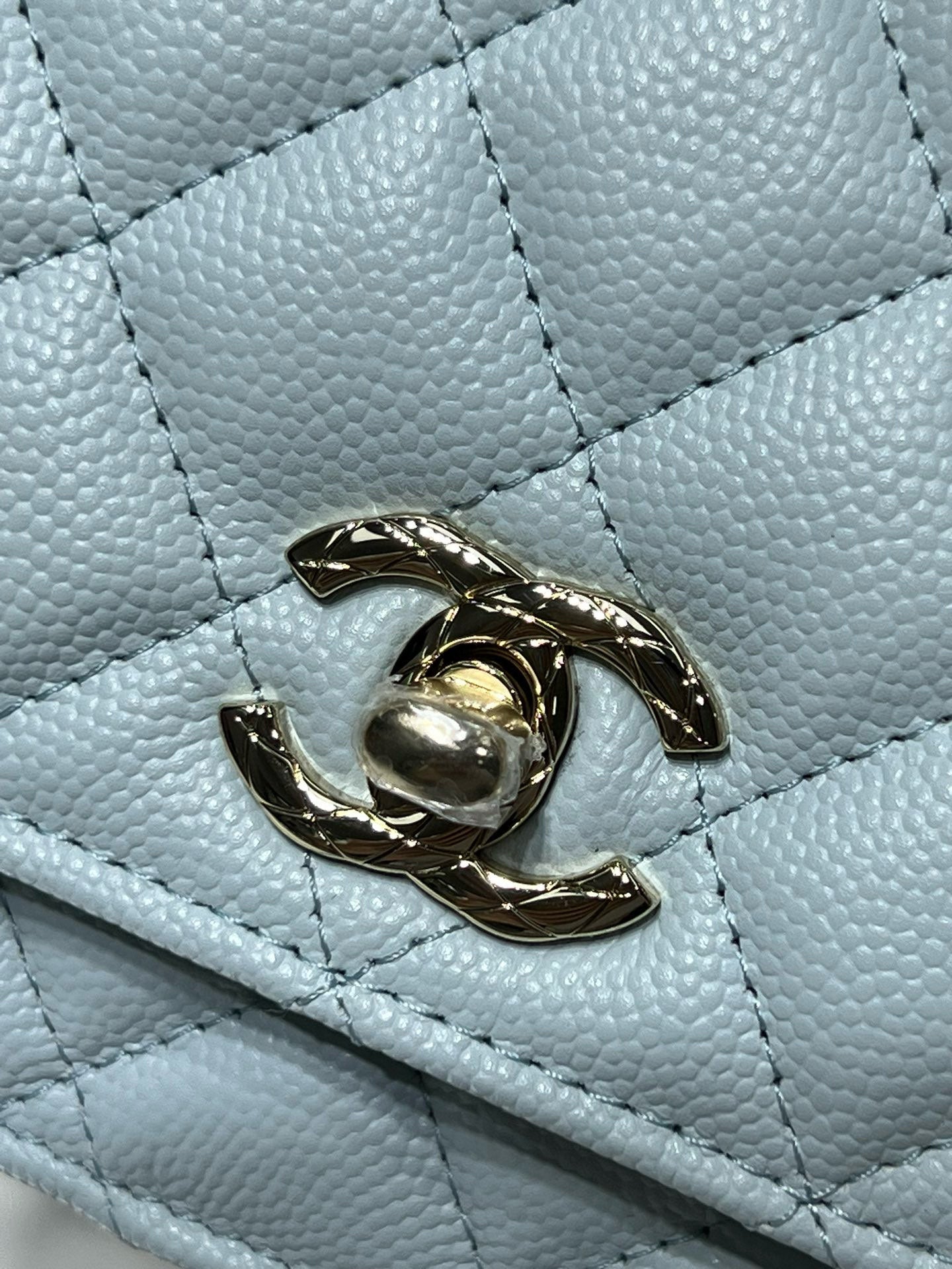 cc 25S Woc Top Handle 19cm Cloud Blue Grained Calfskin Light Gold Hardware
