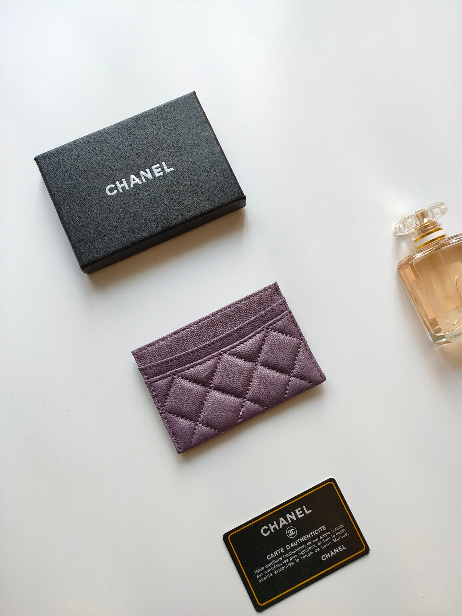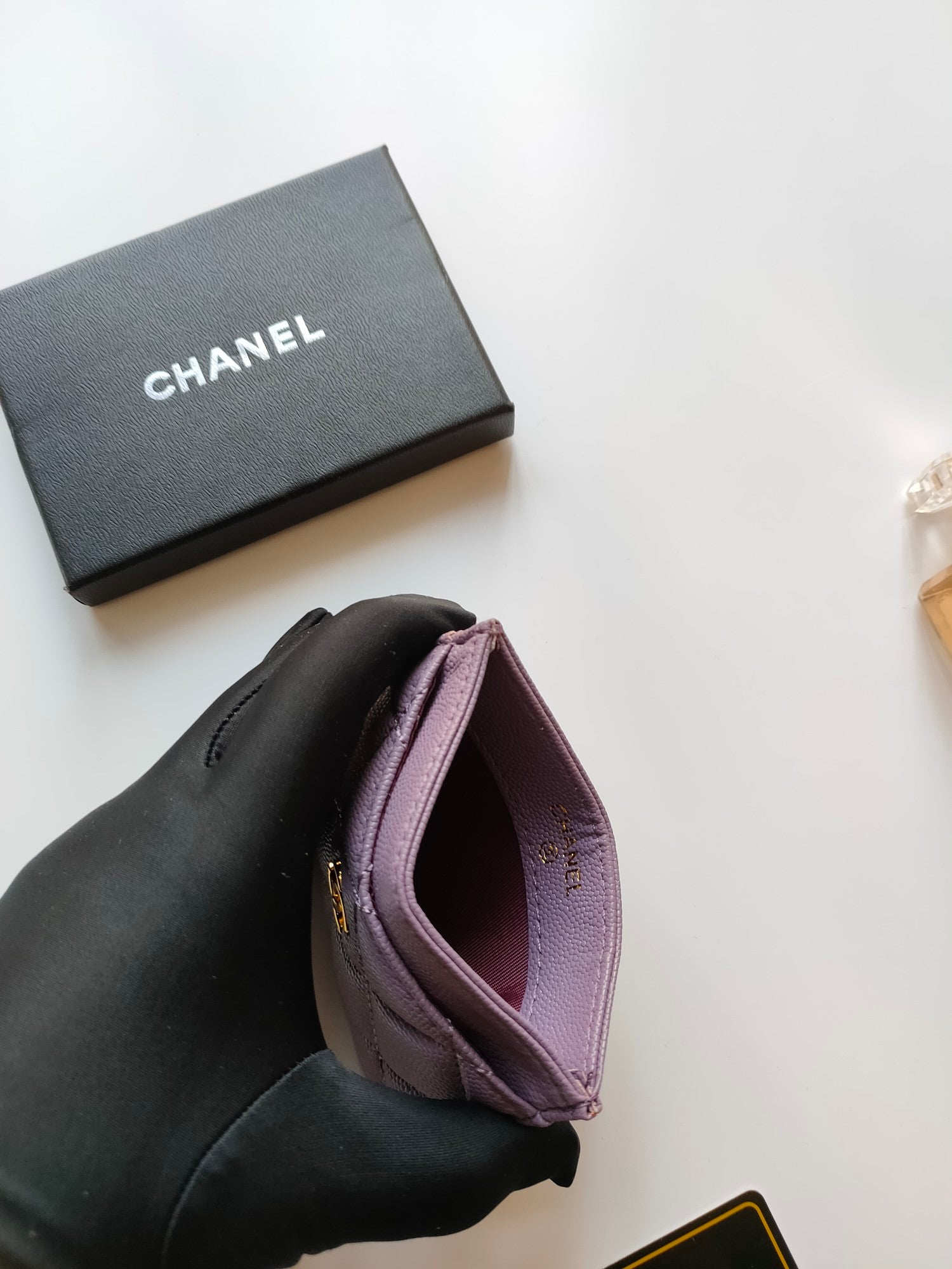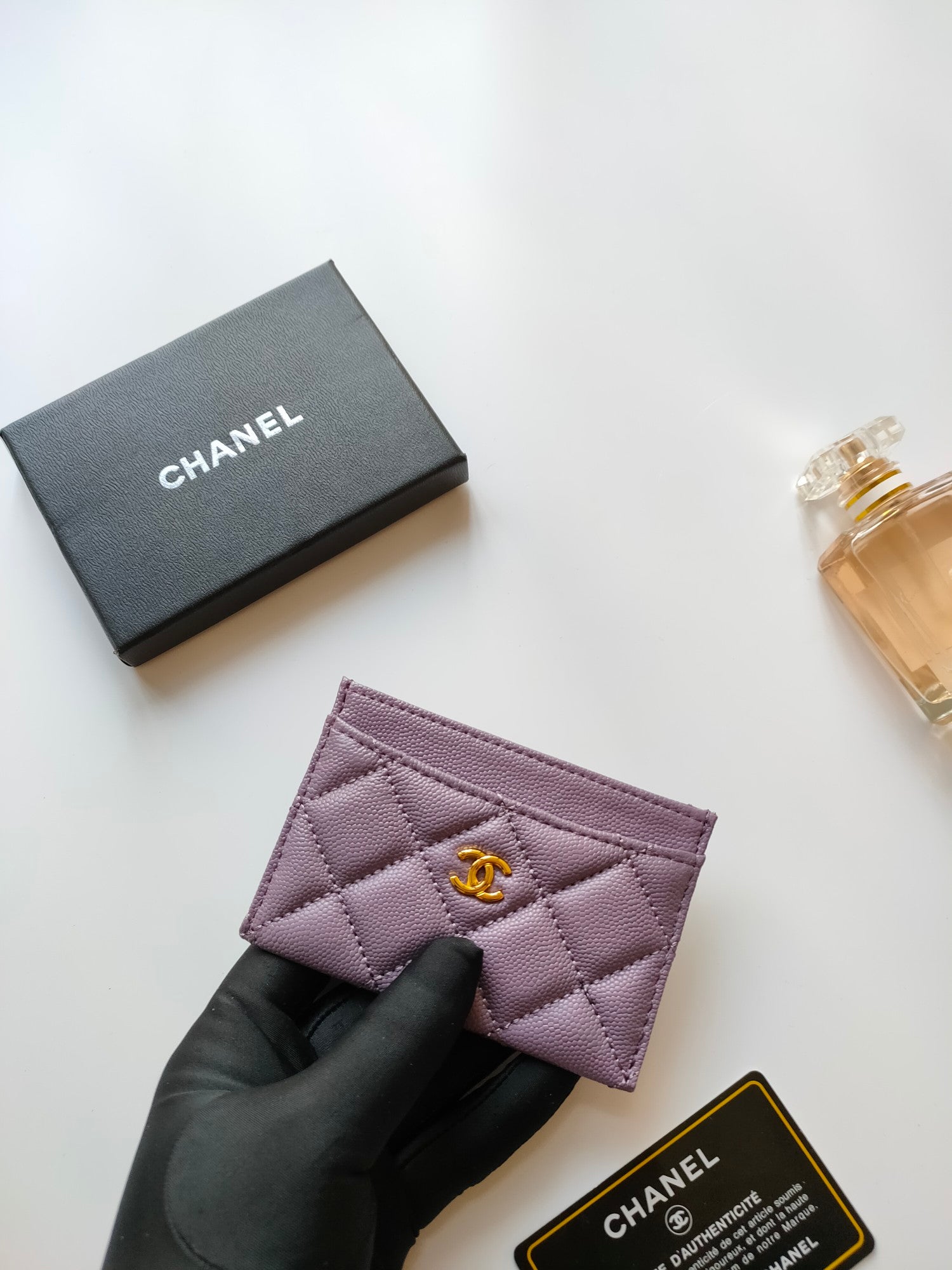 CC CARD HOLDER 11.2 MAUVE GRAINED CALFSKIN GOLD ICON