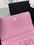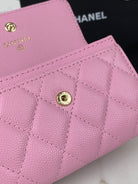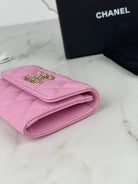 CC FLAP CARD HOLDER 11 PINK GRAINED CALFSKIN GOLD ICON