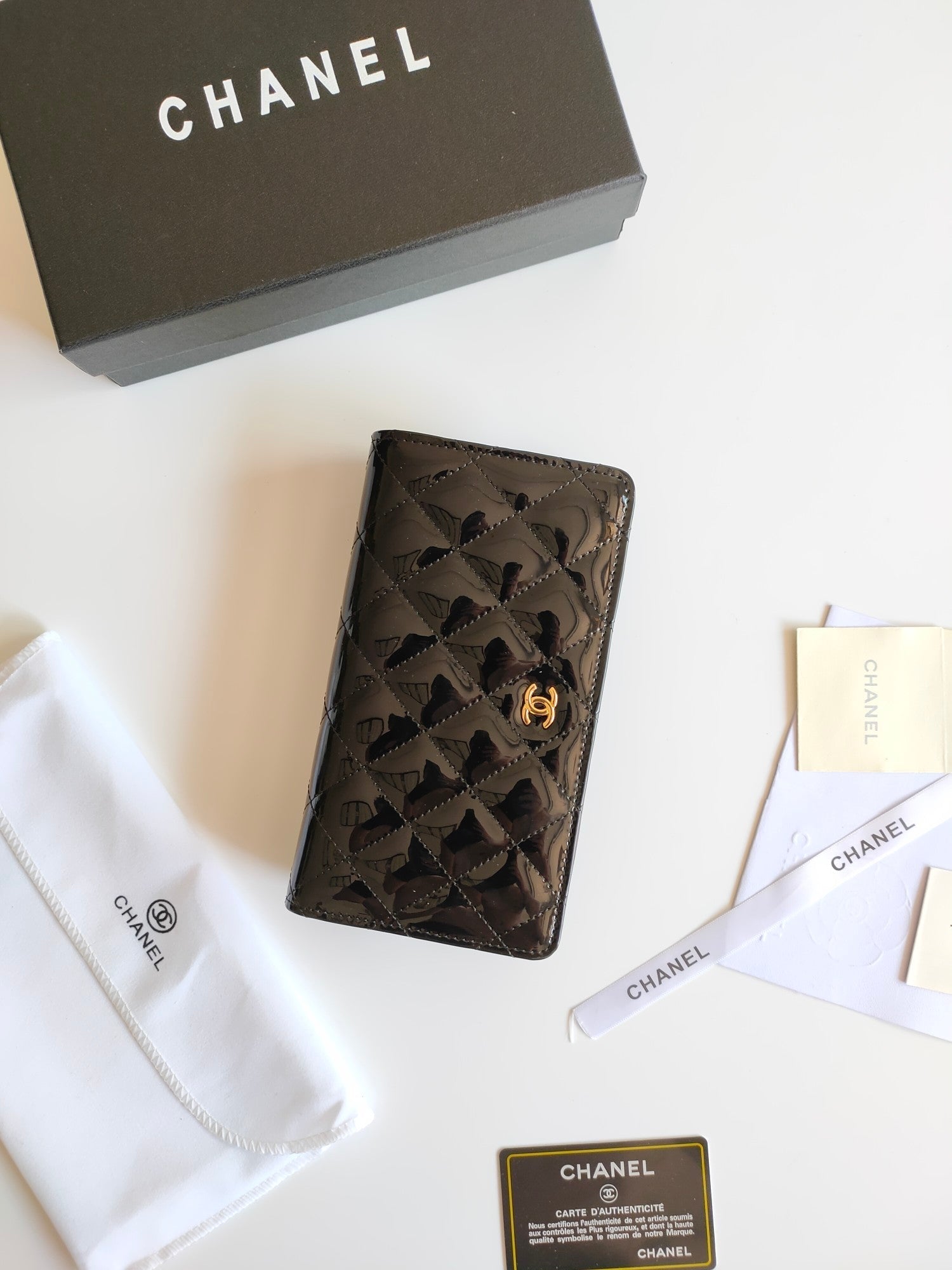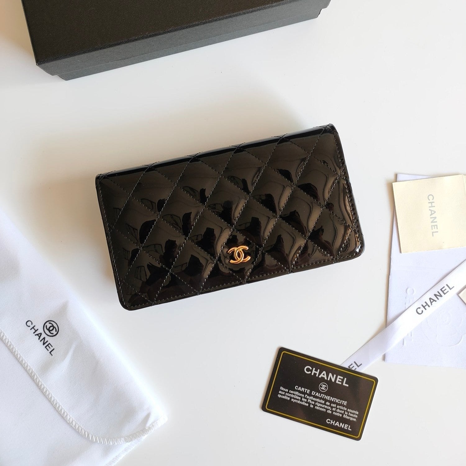 CC ZIPPED LONG PURSE 19 BLACK POLISHED CALFSKIN GOLD ICON
