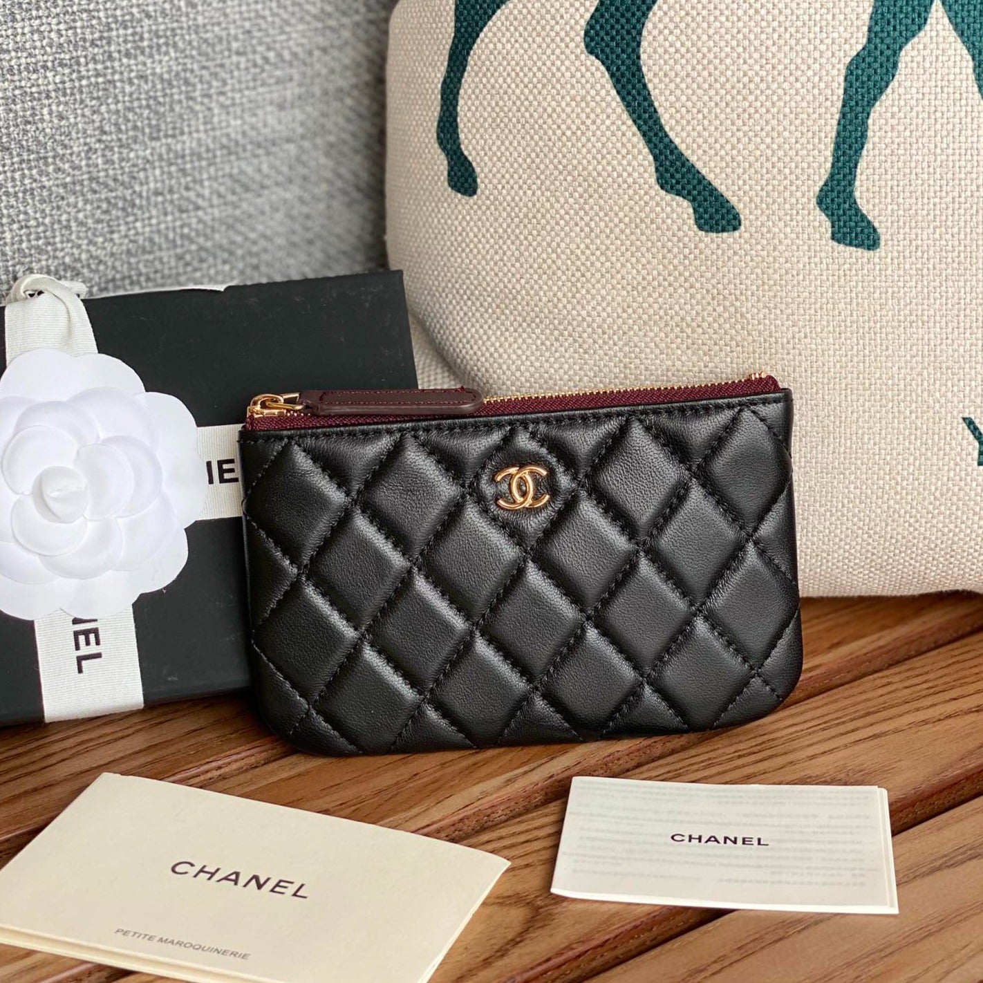 cc zipped wallet 15 black lambskin gold hardware