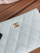 cc zipped wallet 15 light cloud blue caviar gold hardware