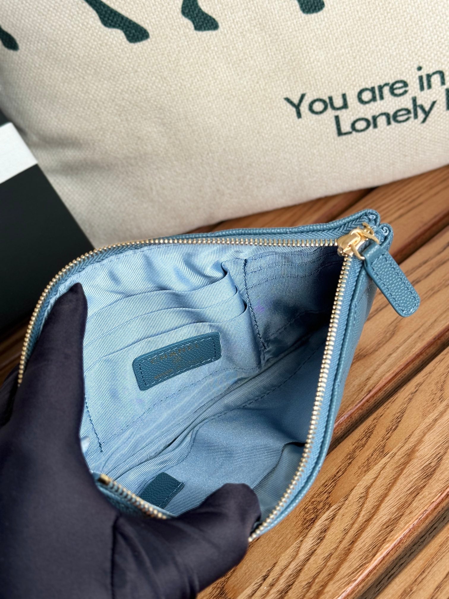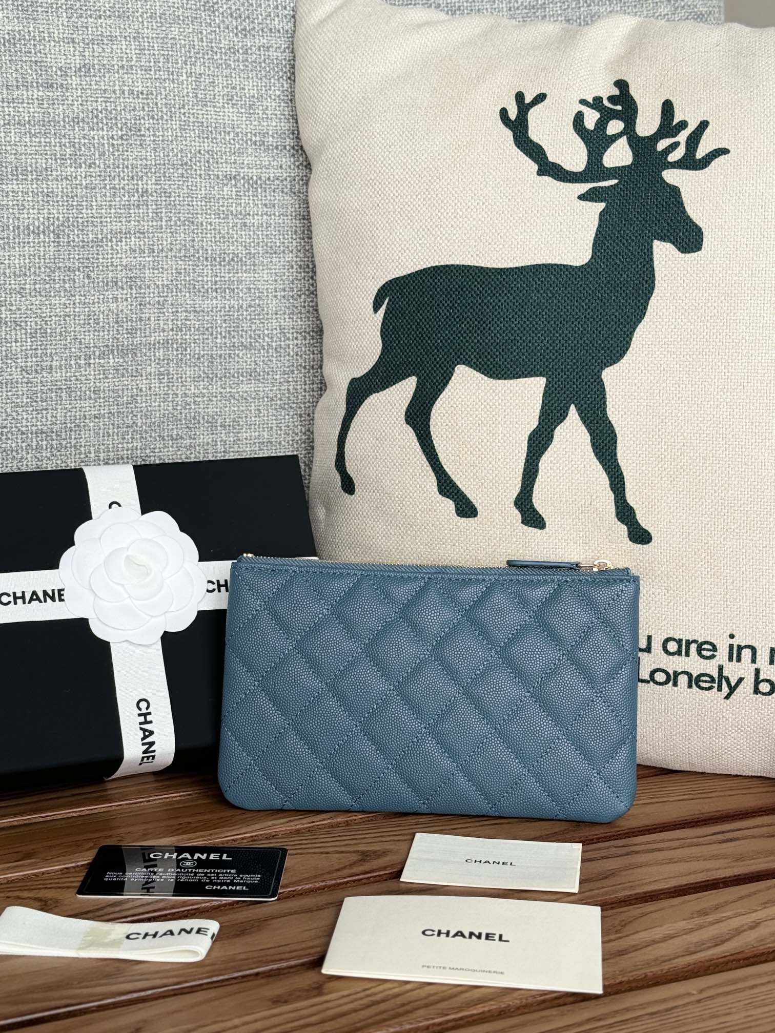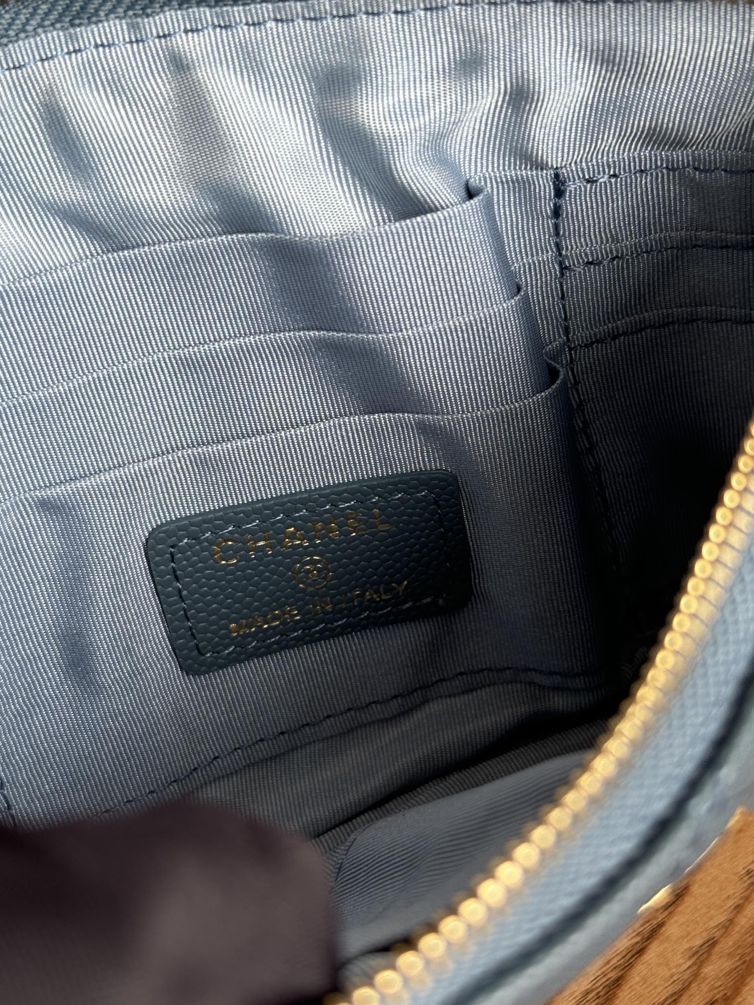 cc zipped wallet 20cm blue quilted caviar gold hardware