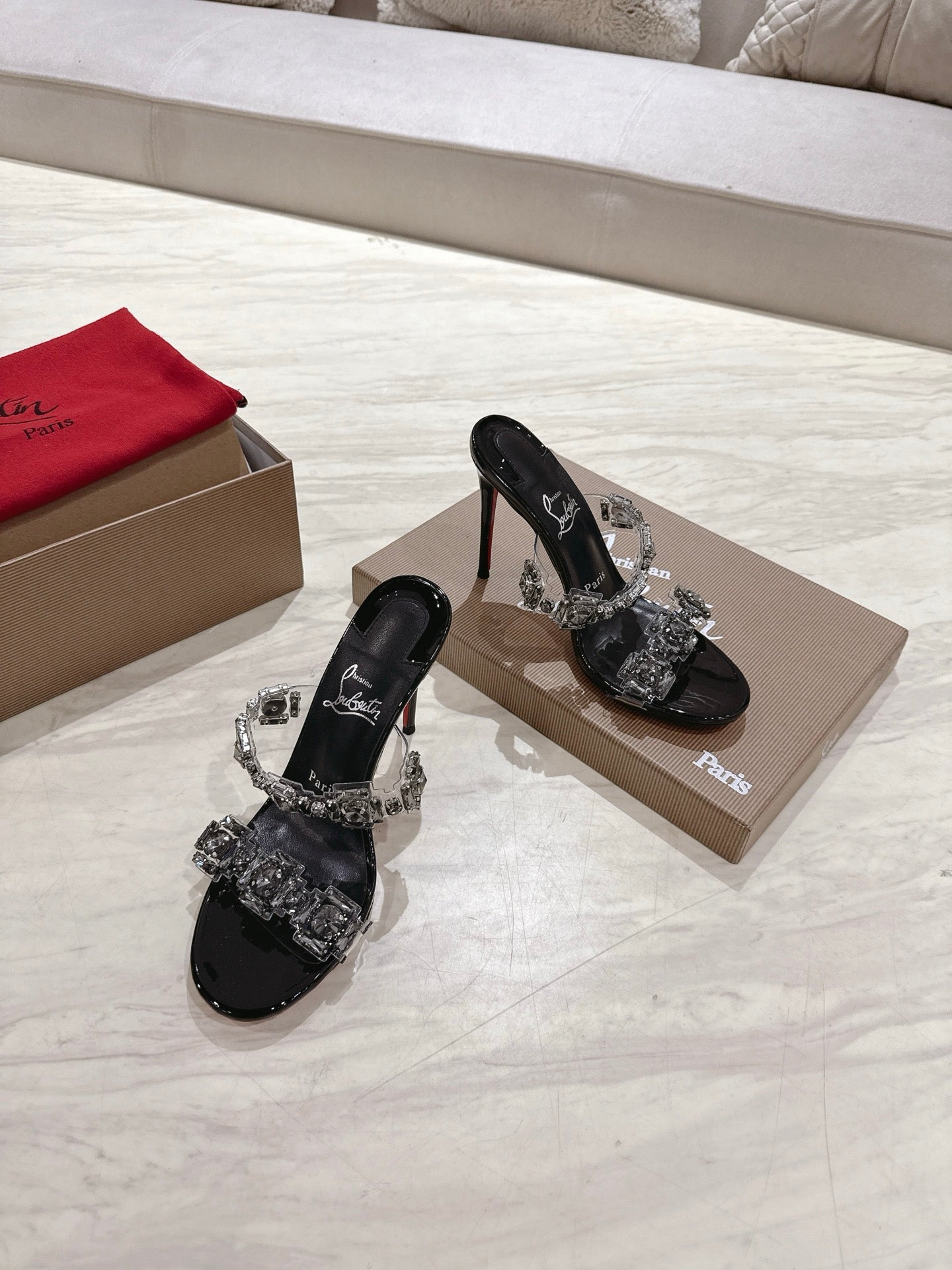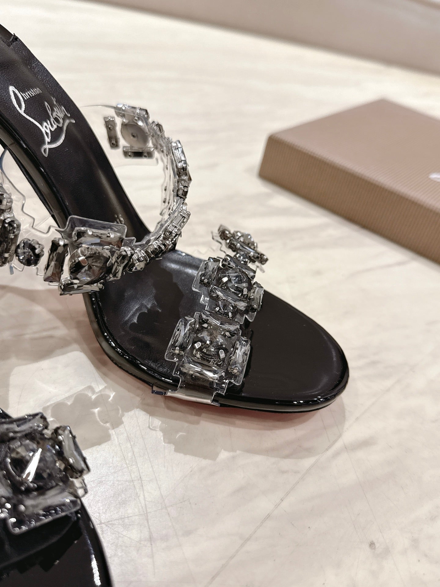 CL 25 Just Queen Sandals 10cm Black PVC Sheepskin 307525