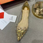 CL Collaclou Spike Clear Flat Embellished Pvc and Metallic Leather Gold