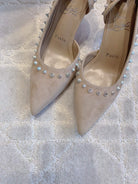 CL Irishell 85 Studded d'Orsay Pumps Cream Suede 177131