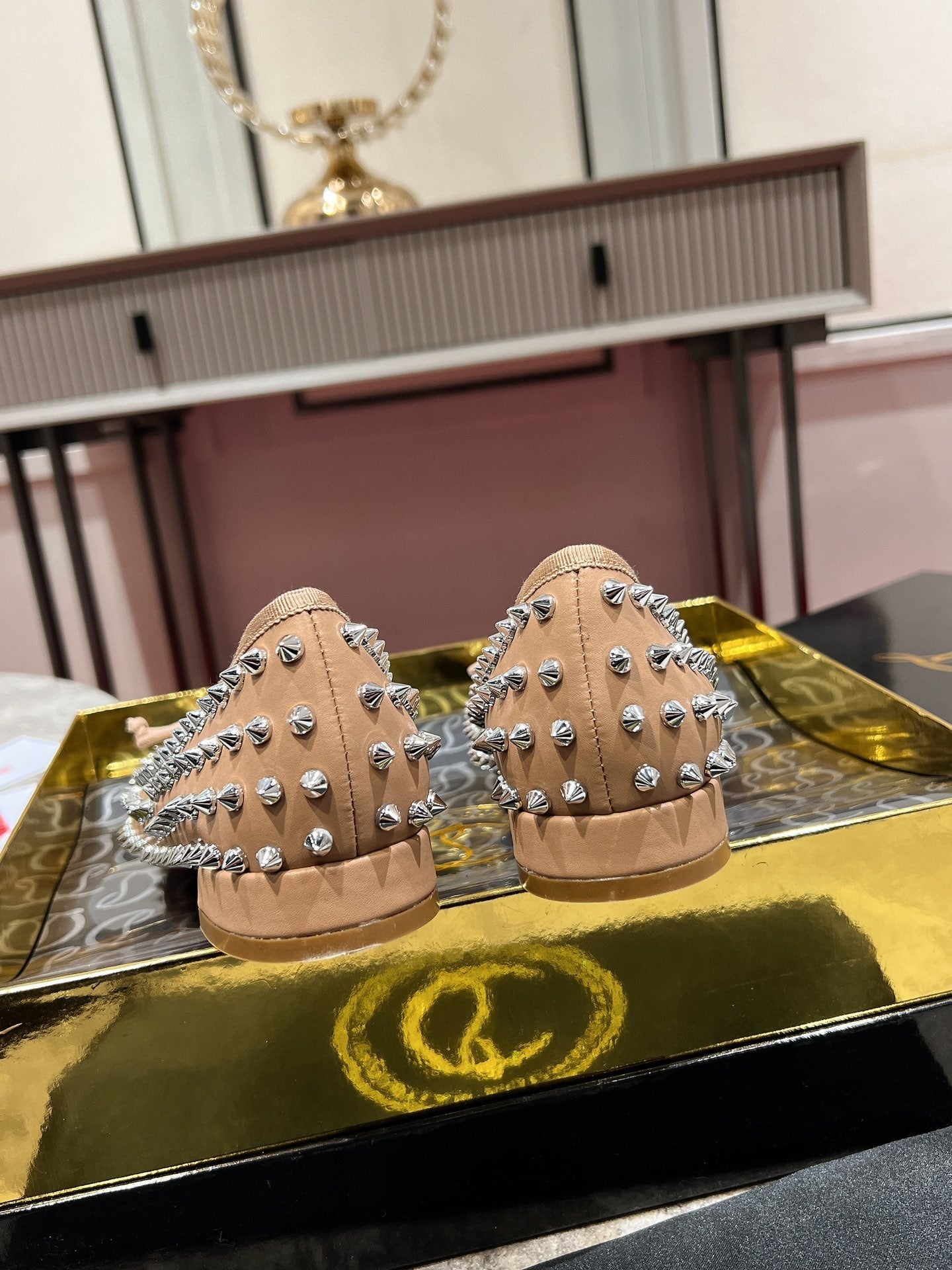 CL Sweetie Jane Spikes Ballerina Pump Nappa Leather Blush Beige