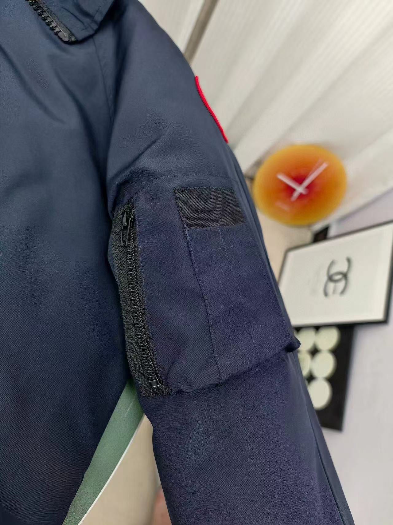 C. Goose Bomber Jacket Navy Blue Polyester 0008