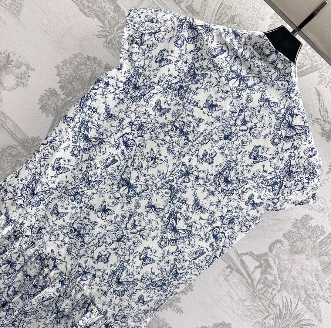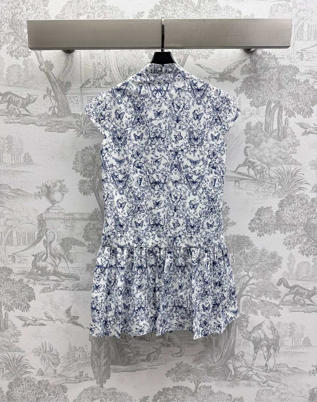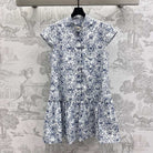 CD Short Dress White Cotton Muslin with Blue Butterfly Motif