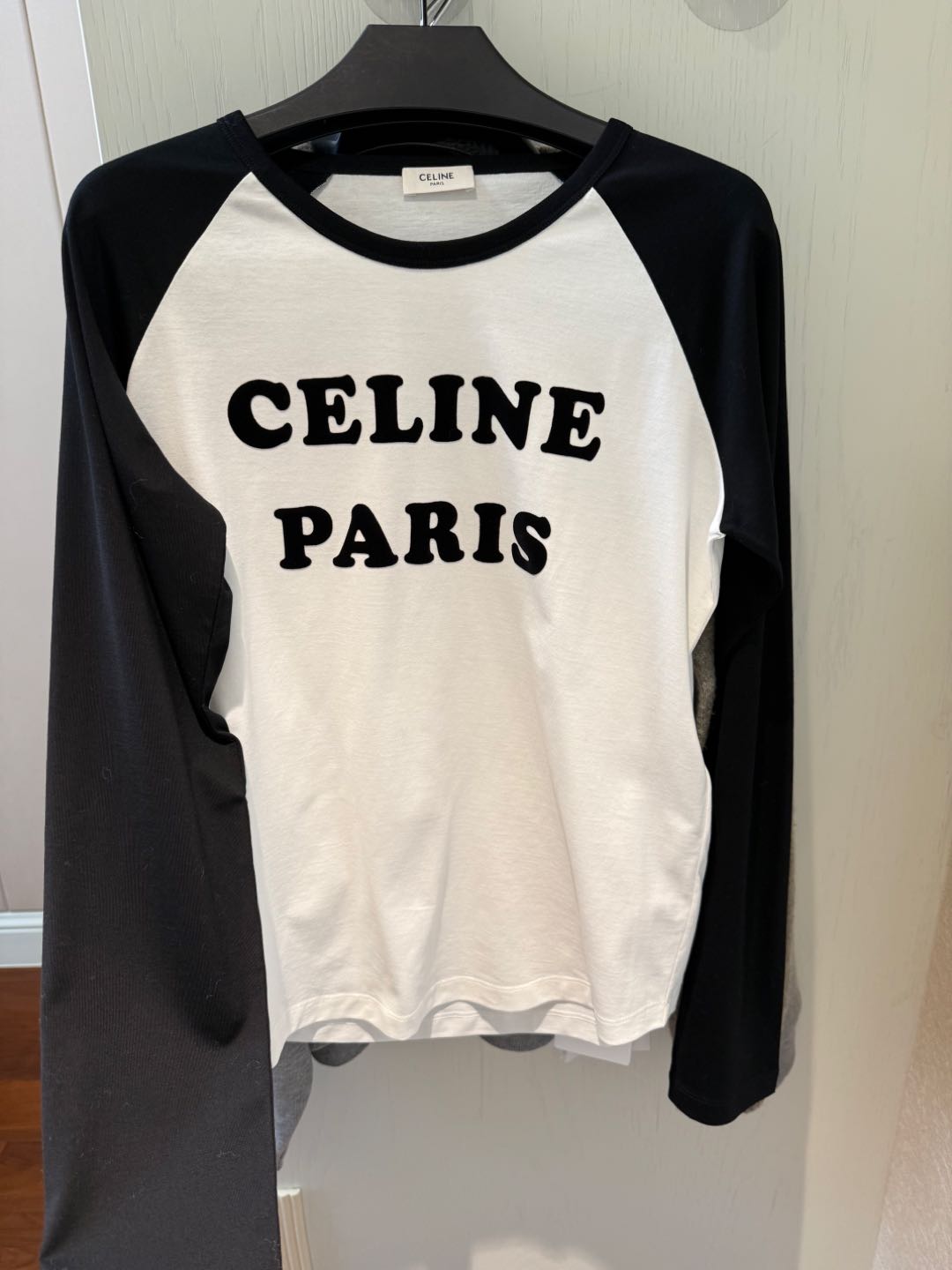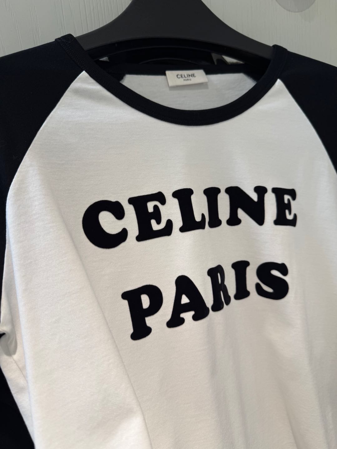 Celine 25 CELINE PARIS Long-sleeve T-shirt White mix Black Cotton